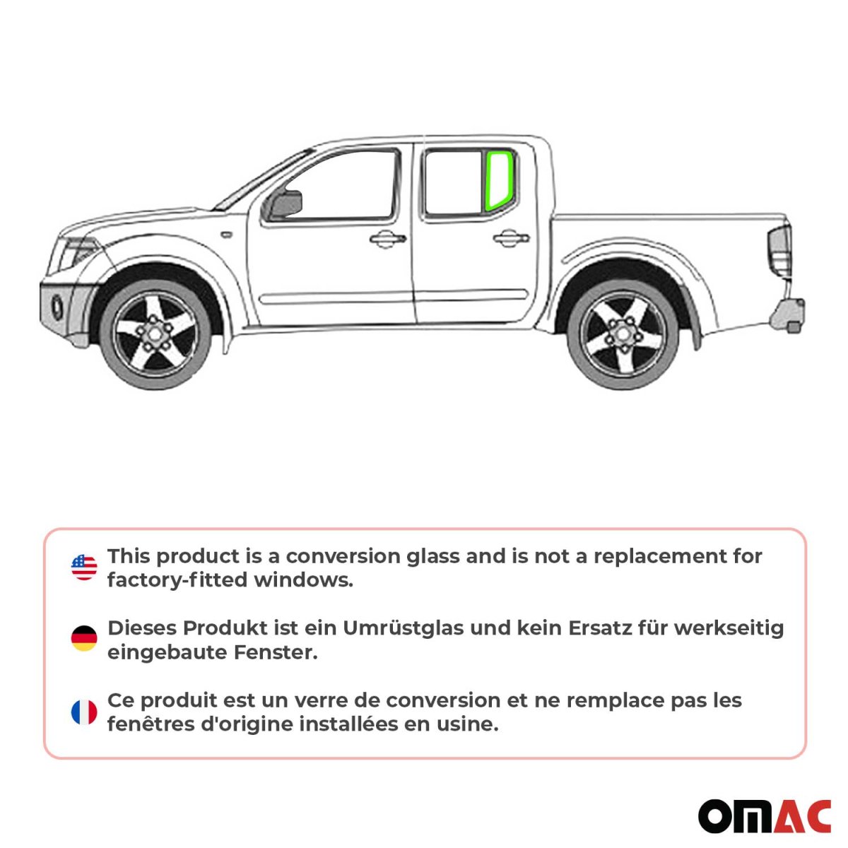 The Nissan Frontier Rear Quarter Glass - Left - Omac USA - Galaxy - '05-'21 is a meticulously engineered replacement glass piece designed for your Nissan Frontier. Manufactured by Omac USA, this high-quality rear quarter glass ensures durability and a seamless fit for models from 2005 to 2021.