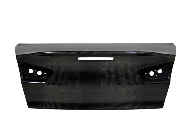 Seibon Carbon components are carefully hand-crafted using only the finest materials. Our production team offers superior craftsmanship with over 20 years of experience working with carbon fiber. Every component is constructed with a consistent weave pattern. Our production processes allows exceptional carbon/resin ratio, creating high product stiffness that also leads to extra strength. For a stunning finish, our products are coated with a glossy clear coat that does not chip or flake. We meticulously inspect all of our components and stand firmly behind our products so that you can enjoy peace of mind with every genuine Seibon Carbon product. Creating performance-oriented products that help shed unnecessary weight without sacrificing style is our specialty. Race after race, Seibon products have proven to be as strong as the driver's ambition to win, thus making Seibon Carbon the preferred brand among professional drivers.. All items are made to order and may require extra time to be manufactured. Do not use stock shocks and dampers.. Seibon 08-10 Mitsubishi Lancer Evo X CSL-Style Carbon Fiber Trunk/Hatch. Uses professional, high quality 3K 2X2 twill weave carbon fiber fabric.. CSL-style carbon fiber trunk lid for 2008-2015 Mitsubishi Lancer EVO. Show-ready. No painting required.. Reuses OEM install hardware. Durable and lightweight. Seibon Trunk. Trunk Lid