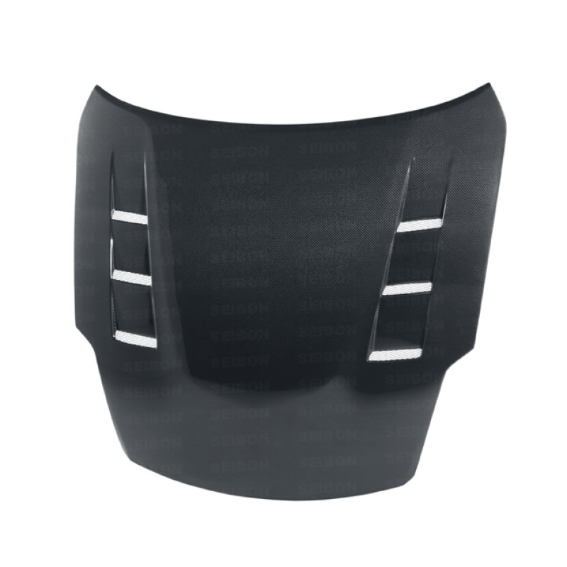Seibon Carbon components are carefully hand-crafted using only the finest materials. Our production team offers superior craftsmanship with over 20 years of experience working with carbon fiber. Every component is constructed with a consistent weave pattern. Our production processes allows exceptional carbon/resin ratio, creating high product stiffness that also leads to extra strength. For a stunning finish, our products are coated with a glossy clear coat that does not chip or flake. We meticulously inspect all of our components and stand firmly behind our products so that you can enjoy peace of mind with every genuine Seibon Carbon product. Creating performance-oriented products that help shed unnecessary weight without sacrificing style is our specialty. Race after race, Seibon products have proven to be as strong as the driver's ambition to win, thus making Seibon Carbon the preferred brand among professional drivers.. All items are made to order and may require extra time to be manufactured. Hood pins required. Heatshield required. Do not use stock shocks and dampers.. TS-style carbon fiber hood for 2007-2008 Nissan 350Z (also fits 2002-2006 models). Uses professional, high quality 3K 2X2 twill weave carbon fiber fabric.. Seibon 07-08 Nissan 350z TS-style Carbon Fiber Hood. Show-ready. No painting required.. Reuses OEM install hardware. Promotes heat extraction. Durable and lightweight. Seibon Hood. Hood