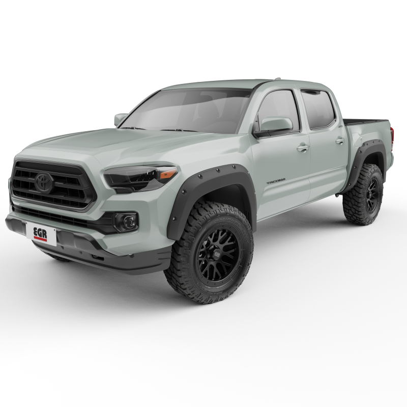 EGR Fender Flares are manufactured to OEM Quality, and are robotically trimmed to give you the most precise fitment in the industry. Made from raw, virgin material, you know you're only getting the good stuff here at EGR. All EGR Fender Flares feature an easy, no-drill installation process; which will have you showing off your truck in no time. Don't get faded with the other guy's; EGR Fender Flares all feature a UV protectant film that will keep your flares looking new for years to come. When it comes to EGR, Premium Quality would be an understatement, it's the Standard!. EGR Bolt On Look Fender Flares features EGR's OEM grade, no drill installation. EGR Fender Flares are the perfect DIY upgrade for your vehicle. The UV protected, lightly textured finish is easy to clean and fade resistant. EGR Fender Flares can also be painted to match your vehicle. Stainless steel bolts to keep from rusting. Increase tire coverage of your fenders by up to 2 inches. Limited lifetime warranty. FRONT & REAR SET.. THE EGR 795084 is a Bolt-on Series Premium Fender Flare set with stainless accent bolts for the 16-23 Toyota Tacoma are made from high-impact ABS for durability and flexibility while robotic trimming ensures a OEM-Like fit. EGR 795084-Premium Series S/S Bolt On Fender Flares for 16-23 Toyota Tacoma. EGR 16+ Toyota Tacoma w/Mudflap Bolt-On Look Fender Flares - Set. EGR Bolt-On Style Black Fender Flare - proudly made in the USA.. EGR Bolt-On Style Black Fender Flare-proudly made in the USA.. EGR Traditional Bolt-on look Fender Flares set of 4. CNC robotically trimmed for precise fitment. EGR BOLT-ON LOOK FENDER FLARE SET LEVEL 2. 795084-PS BOS 16-23 Toyota Tacoma. EGR - 795084 - BOLT-ON FF SET. Limited Lifetime Warranty. EGR-795084-BOLT-ON FF SET. BOLT-ON FF SET. 795084-PS BOS. Fender Flares. Fender Flare