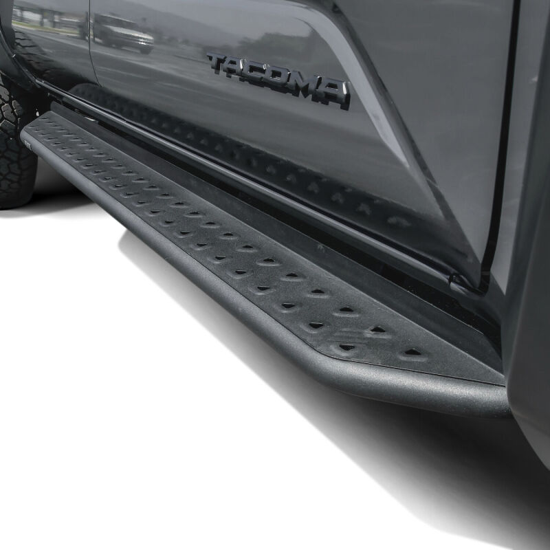 Upgrade your vehicle's functionality and style with Westin's Outlaw Running Boards - a superior upgrade for your truck, Jeep or SUV. Engineered from robust 2in. diameter tubing, these running boards are crafted to endure the toughest conditions, ensuring maximum durability for your adventurous journeys. The robust tubing construction is combined with a 16-gauge steel top step surface plate. Outlaw Running Boards provide a sturdy platform for stepping in and out of your vehicle and are designed to withstand daily wear and tear. Westin Outlaw Running Boards are designed with integrity in mind and help to protect your vehicle rocker panels from potential damage, among other advantages (read about them here). These steel boards fit snugly against the rocker panels and have a unique low-profile design that looks both aggressive and clean. These redesigned Outlaw Running Boards are a superior upgrade from previous Outlaw Nerf Step Bar designs that lacked rock rails and utilize a sleek single-tube design that provides double-thick durability. But it's not all about looks and durability. Safety matters, and the coarse dimple-stamped textured step area enhances slip resistance, providing you and your passengers with a secure footing, even in wet or muddy conditions. Installation is made simple with all necessary hardware and mounting brackets included. Available in a textured black powder coat finish with an electrostatic base coat, these running boards offer long-lasting corrosion protection. They'll maintain their durability and sleek appearance for the long haul. Outlaw Running Boards look good, and stay that way. They're a must-have addition for enthusiasts and everyday drivers alike, all backed by Westin's full 3-year warranty. Order yours today.. Westin 2024 Toyota Tacoma Double Cab Outlaw Running Boards - Textured Black. Electrostatic base coat provides long lasting corrosion protection. Fits tight to rocker panel for a solid fit and rugged look. Retractable License Plate Holder Conceals Receiver Hitch. Equipped With Mount Points For Optional Auxiliary Lights. Optional Class III/IV Hitch Available. Sold Separately. Available For Vehicles With Or Without Backup Sensors. Protects vehicle rocker panels from potential damage. Available in textured black powder coat finish. Coarse textured step area for slip resistance. 2” diameter tubing for maximum durability. Bolt-On Installation; No Drilling Required. Hardware and mounting brackets included. 16-gauge steel top step surface plate. Outlaw Running Boards;Textured Black;. Unique dimple stamped top plate. 2 In. Diameter Tube Frame. 2in Diameter Steel Tube. Outlaw Running Boards. Mount Kit Included. Running Board Set. Running Boards. Textured Black. RNNGBRDS