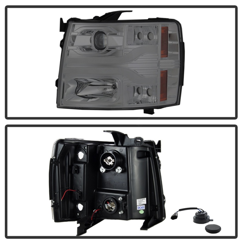 These projector headlights are designed to improve looks and visibility for your vehicle. They are made by OEM approved and ISO certified manufacturers. They are made with OEM standard quality and are designed for stock lights direct replacement.. These headlights are designed to improve looks and visibility for your vehicle. They are made by OEM approved and ISO certified manufacturers. They are made with OEM standard quality and are designed for stock lights direct replacement.. Spyder Chevy Silverado 1500 07-13 Version 3 Projector Headlights - Smoke PRO-YD-CS07V3-LBDRL-SM. (Spyder Signature) Projector Headlights - Version 3 - LED DRL - Smoke. Projector Headlights - Version 3 - LED DRL - Smoke. Designed For Use With Aftermarket Or Stock Bulbs. DRL LED Projector Headlights; Version 3; Smoke;. Made For Direct Plug-And-Play Fitment. Features halogen low and high beam. 5083623, Projector Headlights. DRL LED Projector Headlights. OEM Specific Quality. Projector Headlights. Head Light Set. Headlight Set