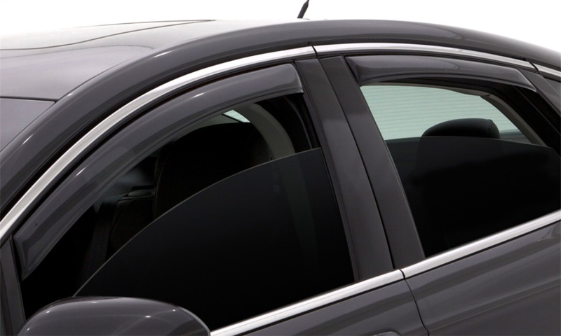 Air it out in style and adventure on with the AVS In-Channel Ventvisor. It installs inside the window channel for a seamless look and gives you total control over cab climate. Designed to custom fit your vehicle’s exact year, make, and model, this in-channel mounted side window de?ector keeps rain and weather out and fresh air in. The constant circulation of air sweeps away unwanted odors from pets, smoking, spills and more. This sleek In-Channel Ventvisor comes in a dark smoke finish with UV resistant materials so no matter how many hours you spend behind the wheel, the color never fades. Installation is hassle-free with no drilling or special hardware required – just attach with the included 3M automotive grade adhesive from the comfort of your own home. All AVS side window de?ectors are engineered tough to withstand all the elements and are backed by a Limited Lifetime Warranty. Proudly made in the USA with global materials.. Air it out in style and adventure on with the AVS In-Channel Ventvisor. It installs inside the window channel for a seamless look and gives you total control over cab climate. Designed to custom fit your vehicle's exact year, make, and model, this in-channel mounted side window de?ector keeps rain and weather out and fresh air in. The constant circulation of air sweeps away unwanted odors from pets, smoking, spills and more. This sleek In-Channel Ventvisor comes in a dark smoke finish with UV resistant materials so no matter how many hours you spend behind the wheel, the color never fades. Installation is hassle-free with no drilling or special hardware required – just attach with the included 3M automotive grade adhesive from the comfort of your own home. All AVS side window de?ectors are engineered tough to withstand all the elements and are backed by a Limited Lifetime Warranty. Proudly made in the USA with global materials.. Circulate fresh air through your cab to sweep away stale,