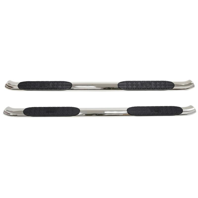 Westins Pro Traxx 4 Oval Nerf Step Bars feature a 4in. oval tube with a heavy-duty step pad that provides a wider and more secure step area. They feature 30 factory style bends that have seamless domed ends so there are no end-caps or exposed bolt heads. Applications are bolt-on installation.. PRO TRAXX 4 Oval Nerf Step Bars; Polished Stainless Steel Rocker Mount; Incl. Mount Kit And Hardware;. Constructed of 4", 5" or 6" oval tubing with 4" wide injection molded polymer step pads. Bolt-on installation and mount kit included - no drilling required on most applications. Westin 2014-2018 Chevy Silverado 1500 Crew Cab PRO TRAXX 4 Oval Nerf Step Bars - SS. Steel construction with 30 degree factory style bends at each fully-welded dome end. Protects vehicle rocker panels from potential damage. Designed and engineered in San Dimas California USA. Injection Molded Bracket Covers Incl. On Some Apps. 30 Degree Factory Style Bends At Each End Of Tube. Bolt On Installation; No Drill Required. Westin PRO TRAXX 4 Oval Nerf Step Bars. 4 in. Wide Step Area With Westin Logo. Polished Stainless Steel Rocker Mount. Aggressive Saddle Mounted Step Pad. Injection Molded Polymer Step Pad. PRO TRAXX 4 Oval Nerf Step Bars. Incl. Mount Kit And Hardware. Lifetime Limited Warranty. Fully Welded Domed Ends. Step Nerf Bar Kit. Nerf/Step Bar. NRFSTPBR