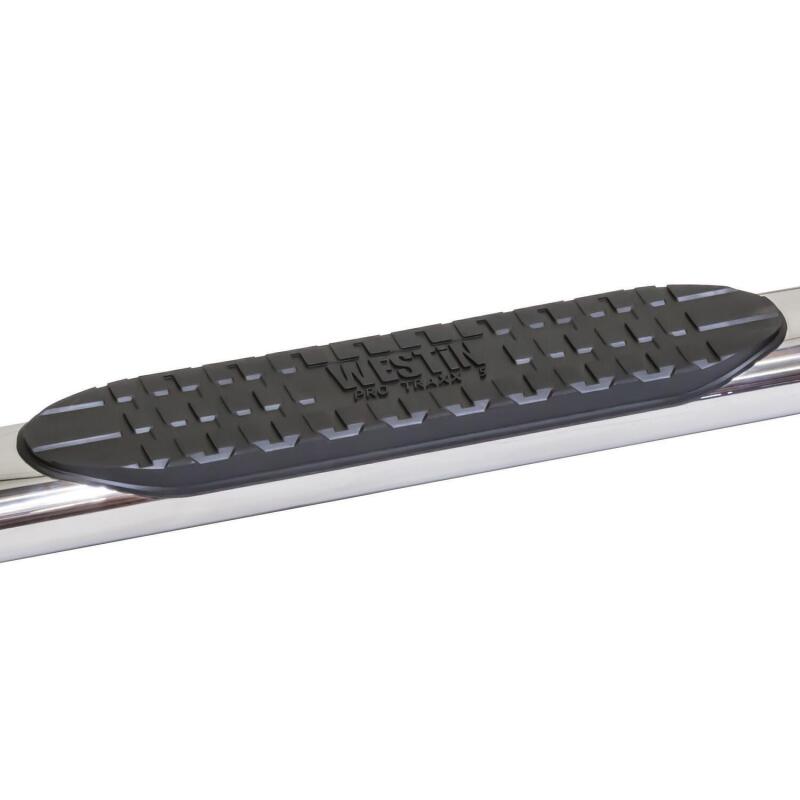 Westin PRO TRAXX 5 W2W Steps feature a heavy-duty step pad that provides a wider and more secure step area. Featuring 30 degree factory style bends that have seamless domed ends without end-caps or exposed bolt heads. Applications are no-drill, which makes installation easy!. Westin 07-18 Chevy Silv 1500 Crew (5.5ft) Excl 2007 Classic PRO TRAXX 5 WTW Oval Nerf Step Bars - SS. PRO TRAXX 5 Oval Wheel to Wheel Nerf Step Bars; Stainless Steel; w/Mount Kit;. Bolt-on installation - no drilling required on most applications. Includes injection molded bracket covers on most applications. Protects vehicle rocker panels from potential damage. Injection Molded Bracket Covers Incl. On Some Apps. 30 Degree Factory Style Bends At Each End Of Tube. 30 degree OE style bends at each end of the tube. PRO TRAXX 5 Oval Wheel to Wheel Nerf Step Bars. Wheel-to-Wheel (WTW) length step bars. Third Step For Easy Truck Bed Access. Isolator Bracket Incl. On Some Apps. PRO TRAXX 5 Oval W2W Nerf Step Bars. Injection Molded Polymer Step Pad. No Drilling Required On Most Apps. Lifetime Limited Warranty. Fully Welded Domed Ends. Bolt On Installation. Mount kit included. 30 Degree OE Bends. Step Nerf Bar Kit. Nerf/StepBarWTW. Stainless Steel. 5" oval tube. w/Mount Kit