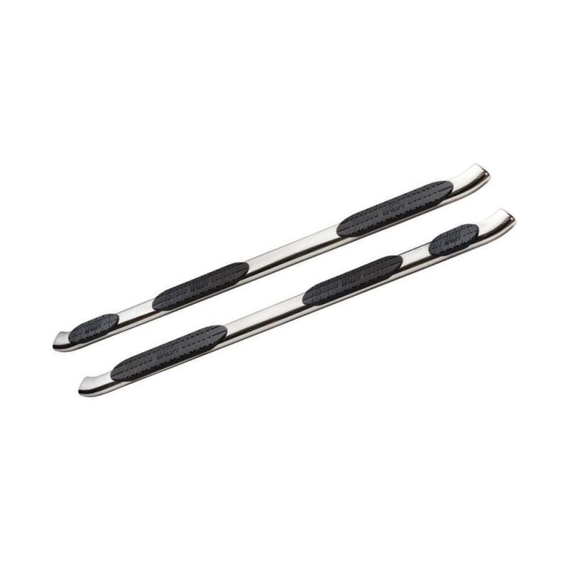 Westin PRO TRAXX 5 W2W Steps feature a heavy-duty step pad that provides a wider and more secure step area. Featuring 30 degree factory style bends that have seamless domed ends without end-caps or exposed bolt heads. Applications are no-drill, which makes installation easy!. Westin 07-18 Chevy Silv 25/3500 Crew (8ft) (Excl Dually) PRO TRAXX 5 WTW Oval Nerf Step Bars - SS. PRO TRAXX 5 Oval Wheel to Wheel Nerf Step Bars; Stainless Steel; w/Mount Kit;. Bolt-on installation - no drilling required on most applications. Includes injection molded bracket covers on most applications. Protects vehicle rocker panels from potential damage. Injection Molded Bracket Covers Incl. On Some Apps. 30 Degree Factory Style Bends At Each End Of Tube. 30 degree OE style bends at each end of the tube. PRO TRAXX 5 Oval Wheel to Wheel Nerf Step Bars. Wheel-to-Wheel (WTW) length step bars. Third Step For Easy Truck Bed Access. Isolator Bracket Incl. On Some Apps. PRO TRAXX 5 Oval W2W Nerf Step Bars. Injection Molded Polymer Step Pad. No Drilling Required On Most Apps. Lifetime Limited Warranty. Fully Welded Domed Ends. Bolt On Installation. Mount kit included. 30 Degree OE Bends. Step Nerf Bar Kit. Nerf/StepBarWTW. Stainless Steel. 5" oval tube. w/Mount Kit