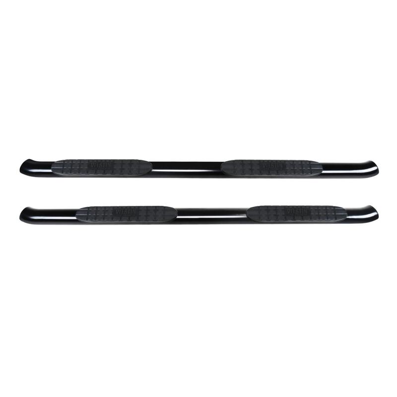 Westins Pro Traxx 4 Oval Nerf Step Bars feature a 4in. oval tube with a heavy-duty step pad that provides a wider and more secure step area. They feature 30 factory style bends that have seamless domed ends so there are no end-caps or exposed bolt heads. Applications are bolt-on installation.. PRO TRAXX 4 Oval Nerf Step Bars; Black Powdercoat Mild Steel Rocker Mount; Incl. Mount Kit And Hardware;. Westin 2019 Chevrolet Silverado/Sierra 1500 Crew Cab Non LD PRO TRAXX 4 Oval Nerf Step Bars - Black. Constructed of 4", 5" or 6" oval tubing with 4" wide injection molded polymer step pads. Bolt-on installation and mount kit included - no drilling required on most applications. Steel construction with 30 degree factory style bends at each fully-welded dome end. Protects vehicle rocker panels from potential damage. Designed and engineered in San Dimas California USA. Injection Molded Bracket Covers Incl. On Some Apps. 30 Degree Factory Style Bends At Each End Of Tube. Black Powdercoat Mild Steel Rocker Mount. Bolt On Installation; No Drill Required. Westin PRO TRAXX 4 Oval Nerf Step Bars. 4 in. Wide Step Area With Westin Logo. Aggressive Saddle Mounted Step Pad. Injection Molded Polymer Step Pad. PRO TRAXX 4 Oval Nerf Step Bars. Incl. Mount Kit And Hardware. Fully Welded Domed Ends. Step Nerf Bar Kit. 3 Year Warranty. Nerf/Step Bar. NRFSTPBR
