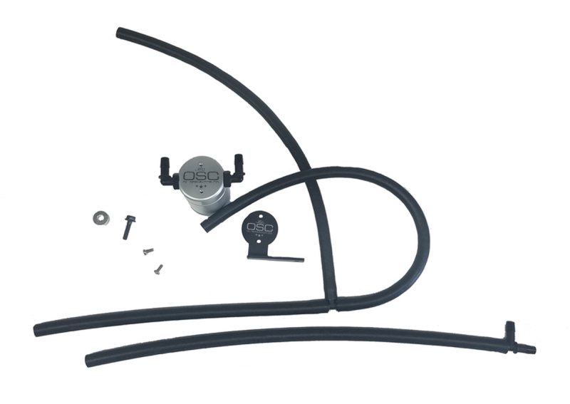 During the process of venting crankcase pressure back through your intake track, large amounts of oil, in the form of vapors can gather/accumulate in your intake tube, intake manifold runners and even dilute your gas, lowering its octane level. This happens on all engines and is even worse with forced inducted vehicles (supercharged and turbocharged) as crankcase pressures are increased. To combat this, we have developed an oil separator of our own design. Milled from solid billet aluminum this is a rock-solid piece. It has a knurled tank base for easy removal to drain the spent oil and an O-ring seal to prevent any leaks.