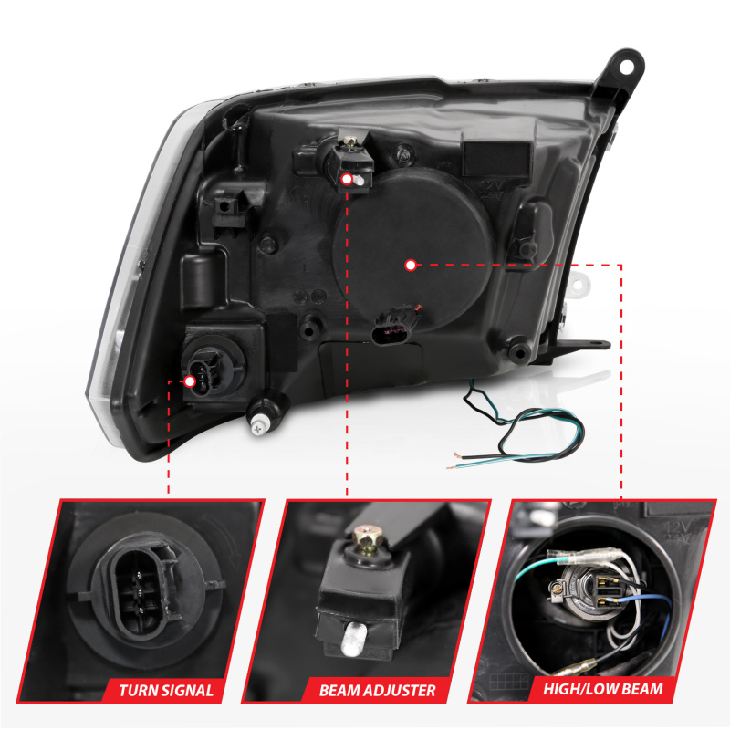 Dodge Ram 1500 LED/Projector Headlights - ANZO - Plank Style w/ Halo - Black - `09-`18