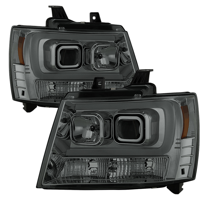 Chevrolet Suburban 2500 Headlights - SPYDER - V2 Projector Light Bar DRL - Smoke - `07-`14