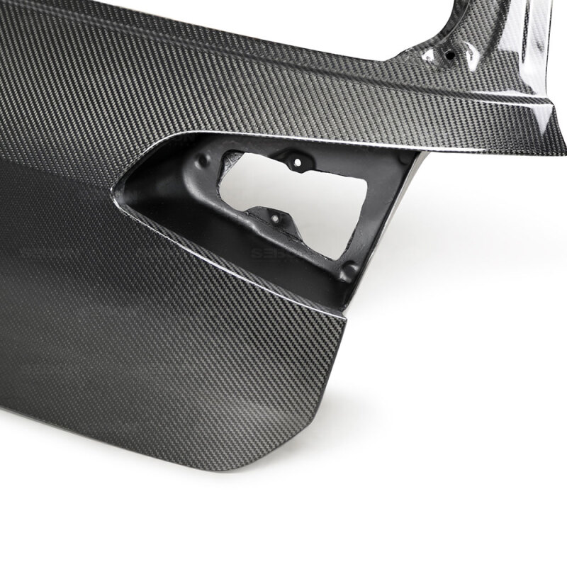 Seibon Carbon components are carefully hand-crafted using only the finest materials. Our production team offers superior craftsmanship with over 20 years of experience working with carbon fiber. Every component is constructed with a consistent weave pattern. Our production processes allows exceptional carbon/resin ratio, creating high product stiffness that also leads to extra strength. For a stunning finish, our products are coated with a glossy clear coat that does not chip or flake. We meticulously inspect all of our components and stand firmly behind our products so that you can enjoy peace of mind with every genuine Seibon Carbon product. Creating performance-oriented products that help shed unnecessary weight without sacrificing style is our specialty. Race after race, Seibon products have proven to be as strong as the driver's ambition to win, thus making Seibon Carbon the preferred brand among professional drivers.. All items are made to order and may require extra time to be manufactured. Do not use stock shocks and dampers.. Seibon 15-19 Volkswagen Golf/GTI/Golf R OEM-Style Carbon Fiber Trunk Lid. Uses professional, high quality 3K 2X2 twill weave carbon fiber fabric.. OEM-style carbon fiber trunk for 2015-2020 VW Golf MK7 GTI. Show-ready. No painting required.. Reuses OEM install hardware. Durable and lightweight. Seibon Trunk. Trunk Lid