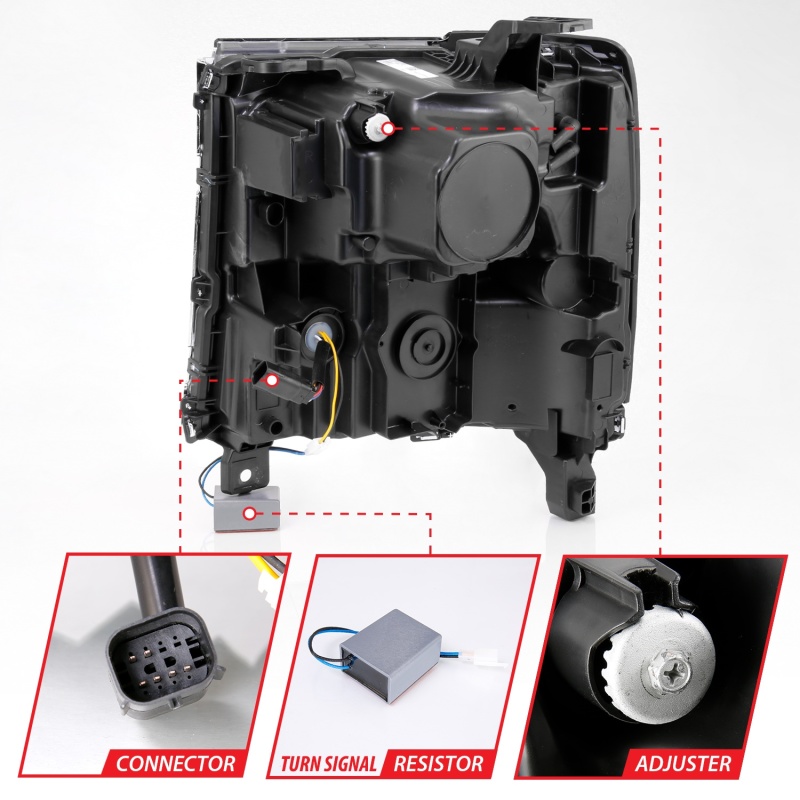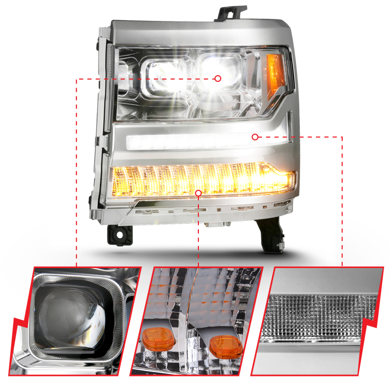 Chevrolet Silverado 1500 LED Projector Headlights - ANZO - Plank Style - Chrome w/Amber - `16-`18