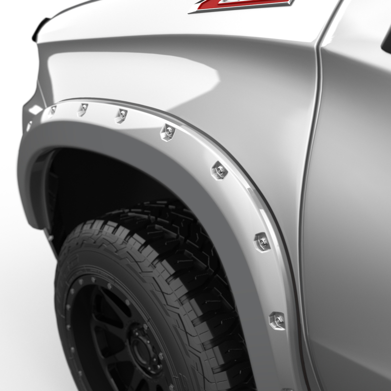 EGR Fender Flares are manufactured to OEM Quality, and are robotically trimmed to give you the most precise fitment in the industry. Made from raw, virgin material, you know you're only getting the good stuff here at EGR. All EGR Fender Flares feature an easy, no-drill installation process; which will have you showing off your truck in no time. Don't get faded with the other guy's; EGR Fender Flares all feature a UV protectant film that will keep your flares looking new for years to come. When it comes to EGR, Premium Quality would be an understatement, it's the Standard!. EGR Bolt-On Look Color Match Fender Flares feature OEM quality, no drill installation, making them the perfect DIY upgrade for your vehicle. The color matched Fender Flares increase tire coverage of your fenders by up to 2 inches. EGR Color Match Fender Flares feature preinstalled protective rubber trim and stainless finished decorative bolts for a hassle free installation.. EGR Traditional Bolt-On Look Paint to Code Fender Flares feature OEM quality, and a no drill installation, making them the perfect DIY upgrade for your vehicle. The Paint to Code Fender Flares can increase tire coverage of your fenders by up to 2 inches. EGR Paint to Code Fender Flares feature a hassle-free installation, so you can focus on more of what you want to do.. 791694-GAN-EGR Paint To Code S/S Bolt On Look Fender Flares for 2019-2024 Chevrolet Silverado 1500 (ALL Beds). EGR Color Match Style Switchblade Silver Fender Flare (OEM Color Code: GAN)-proudly made in the USA.. EGR 2019 Chevy 1500 Color Match Style Fender Flare - Set - Switchblade Silver. EGR Paint to Code Switchblade Silver Fender Flare (OEM Color Code: GAN) . 791694-GAN-Bolt-On Fender Flares for 2019-2024 Chevrolet Silverado 1500 . EGR bolt-on look fender flare set-Paint to Code. EGR bolt-on look fender flare set-Color Match. EGR - 791694-GAN - BOLTON FF PAINT TO CD. 791694-GAN-Fender Flares Silverado 1500. Robotically trimmed for precise fitment. Guaranteed To Match The Factory Color. EGR-791694-GAN-BOLTON FF COLOR MTCH. BOLTON FF COLOR MTCH. 791694-GAN-FF Chevy. BOLTON FF PAINTED. Fender Flare