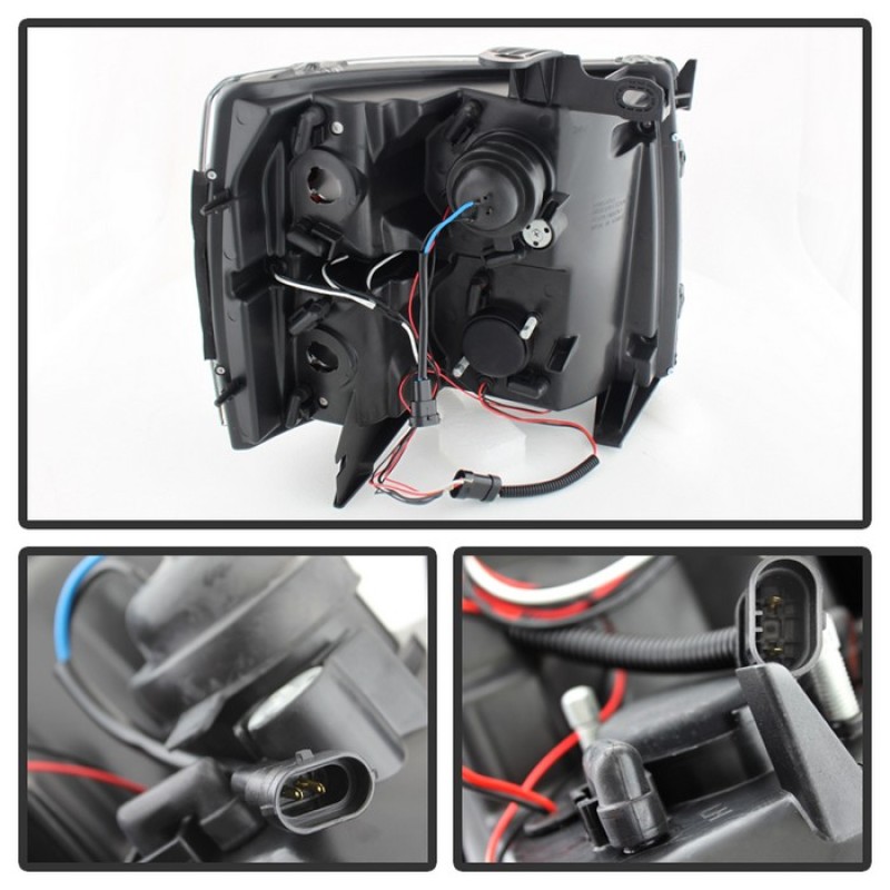 These projector headlights are designed to improve looks and visibility for your vehicle. They are made by OEM approved and ISO certified manufacturers. They are made with OEM standard quality and are designed for stock lights direct replacement.. Spyder Chevy Silverado 1500 07-13 Projector Headlights LED Halo LED Blk PRO-YD-CS07-HL-BK. Halo LED Projector Headlights; Bulbs Included; Pair; Black;. (Spyder Signature) Projector Headlights - LED Halo - Black. Projector Headlights - LED Halo - Black. Made For Direct Plug-And-Play Fitment. Features halogen low and high beam. Halo LED Projector Headlights. 5009494, Projector Headlights. High Quality Bulbs Included. OEM Specific Quality. Projector Headlights. Head Light Set. Headlight Set