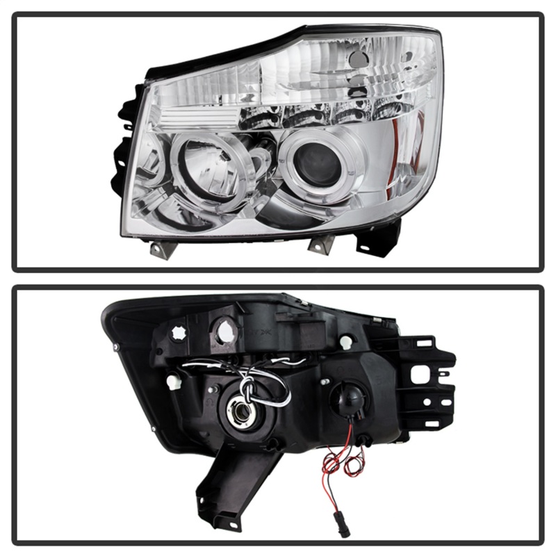 Nissan Armada Headlight Set - SPYDER - Projector, LED Halo - Chrome - `04-`07