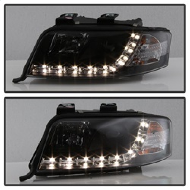 Audi A6 Headlights - SPYDER - Projector, DRL, Halogen Model - Black - `02-`04
