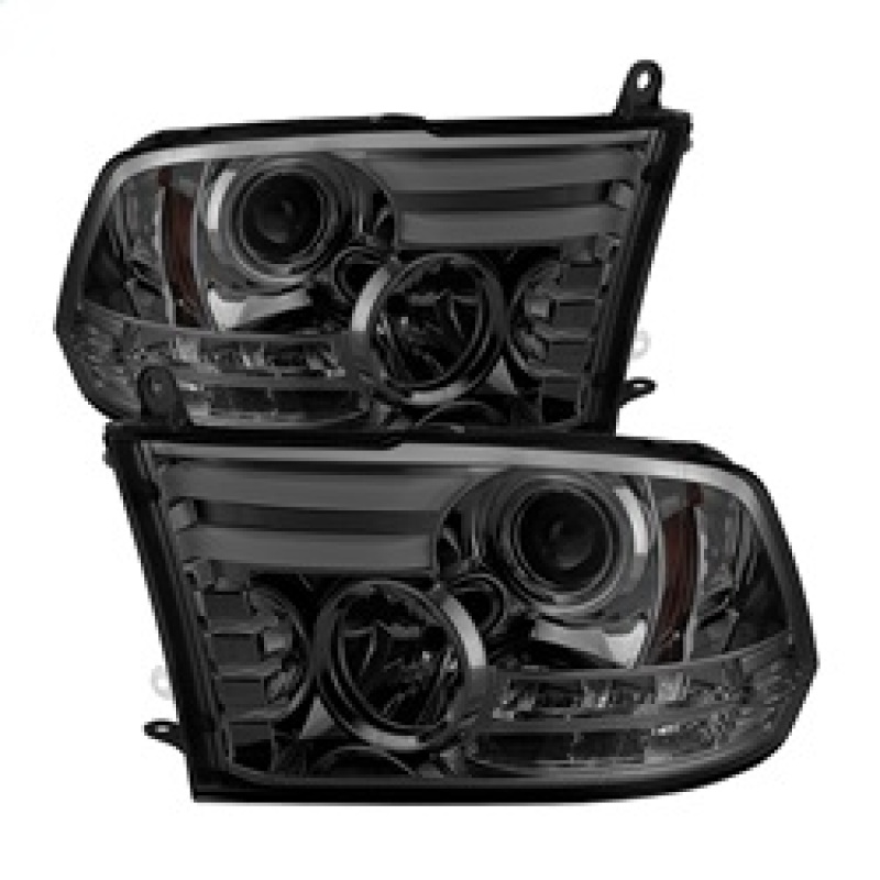 Dodge Ram Headlight Set - SPYDER - Projector Headlights - Light Bar DRL - Smoke - `09-`12