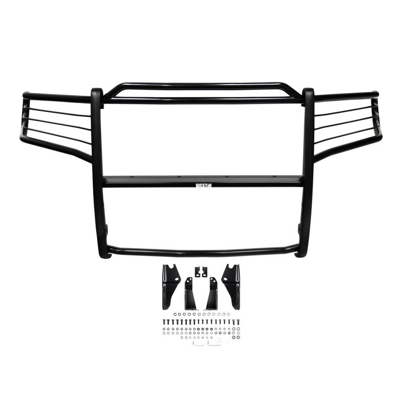 Westin(TM) Sportsman Grille Guards are the standard in front-end products. Its fully welded 1-piece construction provides solid strength and a stable mount. The 1.5in. diameter tube frame is a vehicle specific design and comes complete with mounting kit. The Sportsman Grille Guard comes equipped with light mounting holes and removable headlight area cross bars for easy vehicle headlight maintenance. Installers prefer the easy no-drill installation of this product and therefore choose Westin(TM)! Add a set of Westin(TM) Driving Lights for a complete customized look.. Westin 19-21 Ram 1500 (Excl. 19-21 Ram 1500 Classic)(Excl. Rebel) Sportsman Grille Guard - Black. Sensor re-locator available in black or polished (some applications, check before purchase). Mounts up to 4 auxiliary lights across center channel. Single or double hood bar (varies by application). Headlight Area Guards Are 1.5 in. dia. Tubing. Mounting Points For Optional Driving Lights. Center Crossbars Are 1.5 in. dia. Tubing. Sportsman Grille Guard; Black; Steel;. Thick Rubber Protectors Line Uprights. Removable headlight area cross bars. Uprights include 1/2" rubber strips. Mount kit and hardware included. Vehicle Specific Applications. Tough Black Powdercoat Finish. 1-piece solid construction. Sportsman Grille Guard. Mount Kit Included. 5 Year Warranty. Grille Guard. Black. Steel