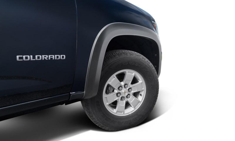 When you want the look that blends sophistication with design and performance, be ORIGINAL with the OE Style Flare! The low profile, refined contours are precision engineered to match the vehicles styling. Choose the flare that enhances the factory accents while providing premium tire protection.. OE Style® Fender Flares; 2 pc.; Front Tire Coverage 0.5 in.; Rear Height 3.75 in.; Smooth Finish; Black;. Precision Engineered To Fit Your Vehicle And Made Of Durable / Yet Flexible Dura-Flex 2000 ABS Material. Precision engineered to fit your vehicle and made of durable, yet flexible dura-flex 2000 ABS material. Installs Easily With Little To No Drilling Or Trimming Required! Plus / All Hardware Is Included. Installs easily with little to no drilling or trimming required! Plus, all hardware is included. Sleek - Low-Profile Style Provides Additional Tire Coverage And Finishes The Wheel Well. Sleek, low-profile style provides additional tire coverage and finishes the wheel well. Bushwacker 15-19 Chevy Colorado (Excl. ZR2) OE Style Fender Flares 2pc Front - Black. Whether On-Road Or Off - Our Heavy-Duty Hardware Holds The Flares Securely In Place. Whether on-road or off, our heavy-duty hardware holds the flares securely in place. OE Style Fender Flares Black Smooth Finish 2-Piece Front. Premium Tire Coverage From 0.5 in. - 2.00 in.. Keeps dirt and debris away from your vehicle. All backed by an industry leading warranty. Premium tire coverage from 0.5" - 2.00". Matte Black or Color Match Finish. Fender Flares OE-Style 2Pc Front. Bushwacker FF OE-Style 2Pc Front. Does not fit ZR2 models.. OE Style® Fender Flares. FF OE-Style 2Pc. Fender Flare
