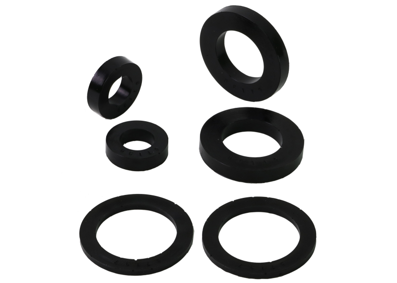 KSB751 will reduce rear-end float particularly under acceleration. It will also remove drive train slap on hard gear changes while delivering more precise handling and chassis response from the rear. Highly recommended for big power engines and compet ition work including drag and circuit racing. Note: Will induce NVH.. KSB751 will reduce rear-end float particularly under acceleration. It will also remove drive train slap on hard gear changes while delivering more precise handling and chassis response from the rear. Highly recommended for big power engines and competition work including drag and circuit racing. Note: Will induce NVH.. Whiteline's latest technology synthetic elastomer formulation boasts resistance to oil, grease, ozone and weathering.. Install guide included providing detailed instructions on how to install your new Whiteline purchase.. Whiteline 02-07 WRX / 03-07 Impreza NA / 04-07 STi / 93-00 Impreza NA Rear Front of rear diff suppor. Specially bonded design for optimised strength typically required in high load bearing applications.. Internal grease reservoirs provide continual self lubrication for optimum friction management.. Supplied with extreme pressure molybdenum disulphide (LM) based grease for extended life.. Inserts are designed to work with the original factory bushing rather than replacing it.. Whiteline Differential - mount front support bushing.. Differential - mount front support bushing. Whiteline Diff - mount fr support bushin. Differential Mount - Front Bushing Kit. Differential Mount Bushing. Bushing Kit