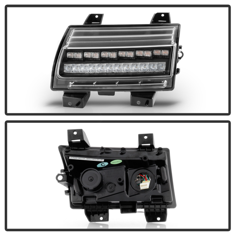 These products are designed to improve looks and visibility for your vehicle. They are made by OEM approved and ISO certified manufacturers. They are made with OEM standard quality and are designed for stock lights direct replacement.. Full LED Front Bumper Lights; LED Model Only; Does Not Fit Halogen Model Only; w/Sequential Signal; Black;. Spyder Jeep Wrangler 2018-2019 ( LED Model Only) LED Front Bumper Lights - Sequential Signal - Black. (Spyder) Full LED Front Bumper Lights - Sequential Signal - Black. Full LED Front Bumper Lights - Sequential Signal - Black. Full LED Front Bumper Lights. 5086808, LED Bumper Lights. BmprLightAssembly. LED Bumper Lights. Auxiliary Light