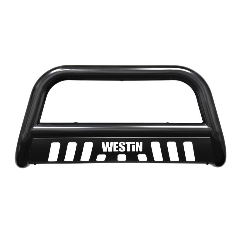 Westin(TM) E-Series Bull Bars are a front-end light bar designed for trucks and larger model SUVs. It is made of 3 diameter polished stainless steel tube. It mounts utilizing existing vehicle mounting points and installation does not require any drilling to the vehicle frame. Comes complete with mounting kit the Westin(TM) E-Series Bull Bar provides a mounting point for 2 auxiliary lights up to 6 in diameter. It features a die-cut Westin(TM) block logo design on the stainless steel skid plate unique to the Westin(TM) E-Series Bull Bar.. Westin 19-22 Ram1500 (Excl. 19-22 1500 Classic/Rebel/Warlock) E-Series Bull Bar - Black. 20" LED light mounting brackets sold separately(Part No. 32-0045). License plate re-locator sold separately (Part No. 32-0055). Black bull bar comes with textured black skid plate. 20 in. Led Light Mounting Brackets Sold Separately. Black Bull Bar Comes w/Textured Black Skid Plate. 2 Light Mounting Points On The Top Of Center Bar. Stainless bull bar comes with brushed skid plate. Stainless Bull Bar Comes w/Brushed Skid Plate. Made Of 3in. Diameter Stainless Steel Tubing. Made of 3" diameter stainless steel tubing. License Plate Re-Locator Sold Separately. E-Series Bull Bar; Black;. Fully Welded Cross Tube. Mount Kit Included. E-Series Bull Bar. Bumper Guard. Bull Bar. Black