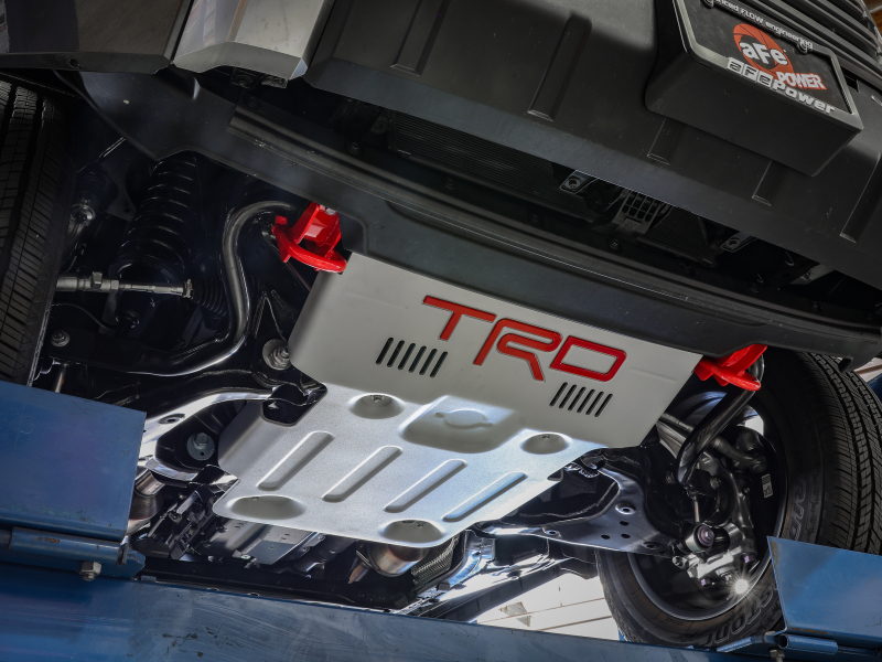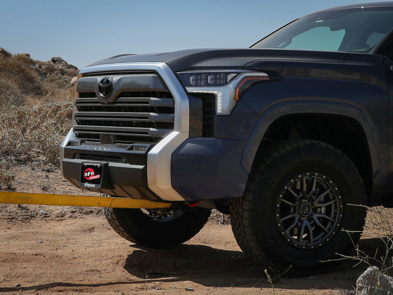 Add dedicated front recovery points to your Toyota Tundra. aFe POWER Tow Loops mount directly to the frame and are much safer than the factory tie-down loop when towing or recovering a stuck vehicle. The 3/4 IN solid steel loop is designed to safely withstand and distribute heavy loads allowing access to several recovery attachments for a strong and durable recovery point. Powder-coated red so they are easily recognized in the elements during off-road adventures. aFe POWER front tow hooks are constructed from 3/16 IN laser-cut, CNC machined steel brackets, and 3/4 IN solid steel bar. MIG welded for strength and durability. Bolts Directly onto the frame, using the front sway bar mounts with no drilling or modifications. Retains the front sway bar use while clearing the Active Aero front spoiler and factory bumper. (Patent Pending). aFe POWER Front Tow Hook Red Toyota Tundra 22-25 V6-3.4L (tt). Clears Active Aero Front Spoiler and Factory Bumper. aFe Front Tow Hook Red 2022 Toyota Tundra 3.5L V6. Bolts Directly To Frame, No Modifications. Laser Cut, 3/16 IN A36 Steel Brackets. Durable 3/4 IN Solid Steel Loop. aFe POWER Front Tow Hook Red. Dedicated Recovery Points. aFe POWER Front Tow Hook. Retains Factory Sway Bar. Front Tow Hook. Sold in Pairs