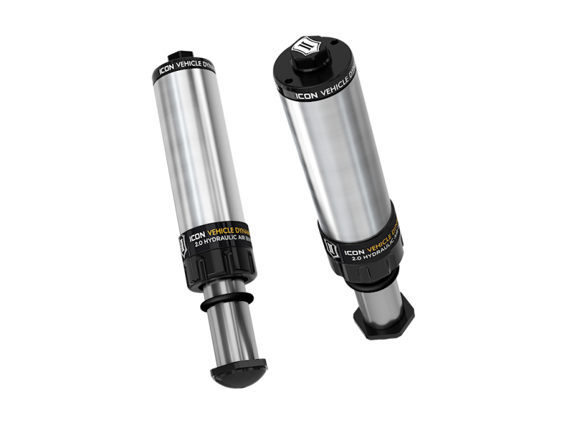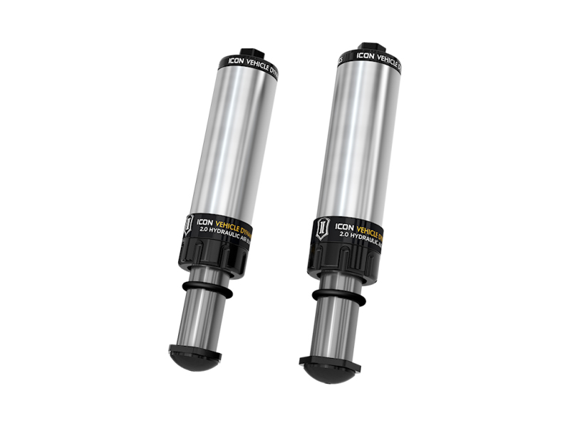 While the factory rear bump stops do a satisfactory job of absorbing impacts on a street driven truck, ICON found that there was much room for improvement during spirited driving in rough, off-road terrain. The ICON Vehicle Dynamics 2022-2025 Toyota Tundra Rear Hydraulic Bump Stop System was designed to take the off-road capability of the truck to new levels by significantly improving the bottom-out control of the rear suspension and reducing rear end kick. Like all ICON hydraulic bumps stops, these feature both velocity and position sensitive technology which means that as the shaft speed increases and moves through the travel, the force increases exponentially to provide excellent bottoming resistance that won’t negatively affect articulation.. This hydraulic bump stop system was developed as an OEM replacement, making installation a simple and straightforward bolt-on affair. With no major cutting, welding, or fabrication required you have the option to return the vehicle back to its stock form. The factory rubber bump stops have a limited energy absorption capacity and a rapid release of this energy upon rebound – This translates into a harsh ride and poor handling in rough terrain. ICON hydraulic bump stops absorb and release this energy in a much more controlled manner due to the digressive rebound piston valving, resulting in predictable handling and vehicle dynamics.. The ICON 2022-2025 Toyota Tundra Rear Hydraulic Bump Stop System was designed to take the off-road capability of the truck to new levels by significantly improving the bottom-out control of the rear suspension and reducing rear end kick.. TECH NOTE: Not compatible with ICON 6" Lift Performance Suspension System. For ICON 6" lift compatibility, use part number 56115.. TECH NOTE: Compatible with 0-1.5" of rear lift on models equipped with rear coil springs with TRD package, or TRD Pro.. TECH NOTE: Compatible with 0-4" of rear lift on models equipped with Load-Leveling Rear Height Control Air Suspension. TECH NOTE: Compatible with 0-2" of rear lift on models equipped with rear coil springs without TRD package.. Position and velocity sensitive technology exponentially increases bottom-out resistance. Direct bolt-in to OEM bump stop location makes for an easy and straightforward install. 2.5” travel bump stop reduces rear end ‘kick’ and improves overall performance. Vehicle specific bump stop tune to provide smooth engagement and best ride quality. Fully reversible to factory configuration with no bed cutting required. Multi stage CAD plated body for maximum corrosion resistance. Heavy duty 1 ¼” CNC machined nitro steel shaft. ICON 2022+ Toyota Tundra Rear Hyd Bump Stop Kit. Double sealed high pressure Schrader valve. Replaceable noise reducing striker pad. 22-25 TUNDRA REAR HYD BUMP STOP KIT. OEM Wheels & Tires Fitment: Yes. Suspension Bump Stop. Fully serviceable. BUMP STOP KIT. 56111