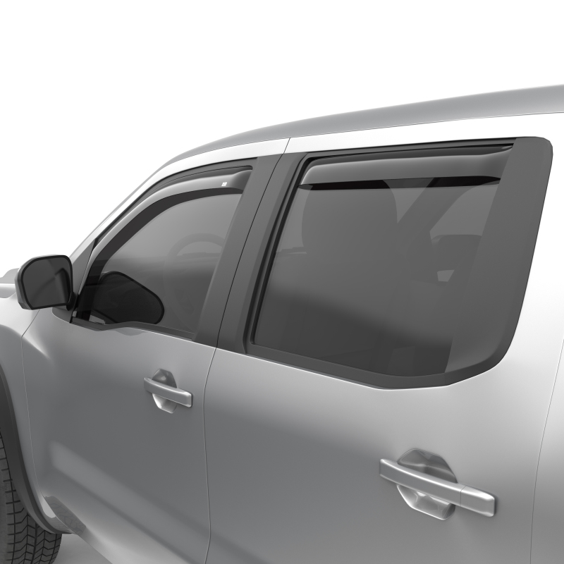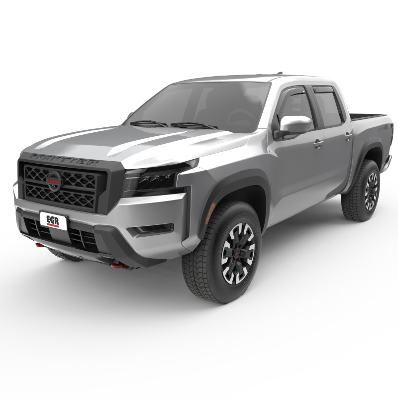 EGR Window Visors are made of a durable, scratch resistant, UV capped acrylic; which will keep your investment from fading, and keep it looking fresh for years to come. With most EGR Window Visors being available in Dark Smoke and Matte Black, customization will never be lacking for the upgrade enthusiast. EGR Window Visors feature an easy, no tools necessary, installation process; whether you choose the classic Tape-on style, or the more modern In-channel style, five minutes or less is all you need! Tape-on Visors utilize a dependable 3M adhesive tape, which will ensure that your EGR Window Visors aren’t going anywhere. All EGR Window Visors come standard with a Limited Lifetime Warranty; meaning that just like our Window Visors, EGR will always be by your side!. EGR DARK SMOKE In-Channel Window Visors are designed to promote fresh air circulation inside the vehicle. These fully integrated, custom molded designs help to reduce windshield fogging in wet weather for safer driving, and can lower interior temperatures in parked vehicles. The UV protected finish is easy to clean.. Limited lifetime warranty. FRONT & REAR SET.. The EGR 576041 is a 4pc set of smoked In-channel window visors for the 2022-2024 Nissan Frontier Crew cabs that is made from durable UV capped acrylic to promote fresh air circulation helping to reduce interior temps. EGR 2022+ Nissan Frontier In Channel Window Visors Front/Rear Set - Dark Smoke Crew Cab. EGR 576041-4pc Smoke In-channel Window Visors for 22-25 Nissan Frontier Crew Cab. EGR In Channel Style Dark Smoke Window Visor - proudly made in the USA.. EGR in-channel window visors front & rear set dark smoke finish. 576041-IC4-S 22-25 Nissan Frontier Crew. EGR - 576041- IN-CHANNEL SMOKE 4p. Fits Into Upper Channel. Side Window Deflector. IN-CHANNEL SMOKE 4p. Window Visors. 576041-IC4-S
