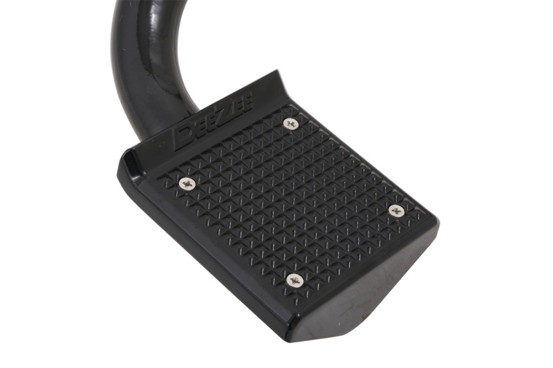 Dee Zee Bumper Step – Add the Dee Zee Bumper Step and get a secure step up to access the cargo stowed in your truck bed. Installed on the driver's side of the vehicle, the frame mounted step provides a lower stepping surface. It is accessible with the tailgate down or without dropping the tailgate to reach items in the truck bd. The step is made from cast aluminum to reduce weight and features a protective black powder coat to blend into your truck frame. Slip-resistant raised nodules on the step area ensure a secure footing. The rugged steel mounting bracket uses factory holes for a quick, no-drill install and offered for full size trucks.. Deezee 17-23 Ford SuperDuty Bumper Step. Bumper Step; Drivers Side; Aluminum;. 3 Year Limited Warranty. Bumper Corner Step. Bumper Step Pad. Bumper Step. Aluminum