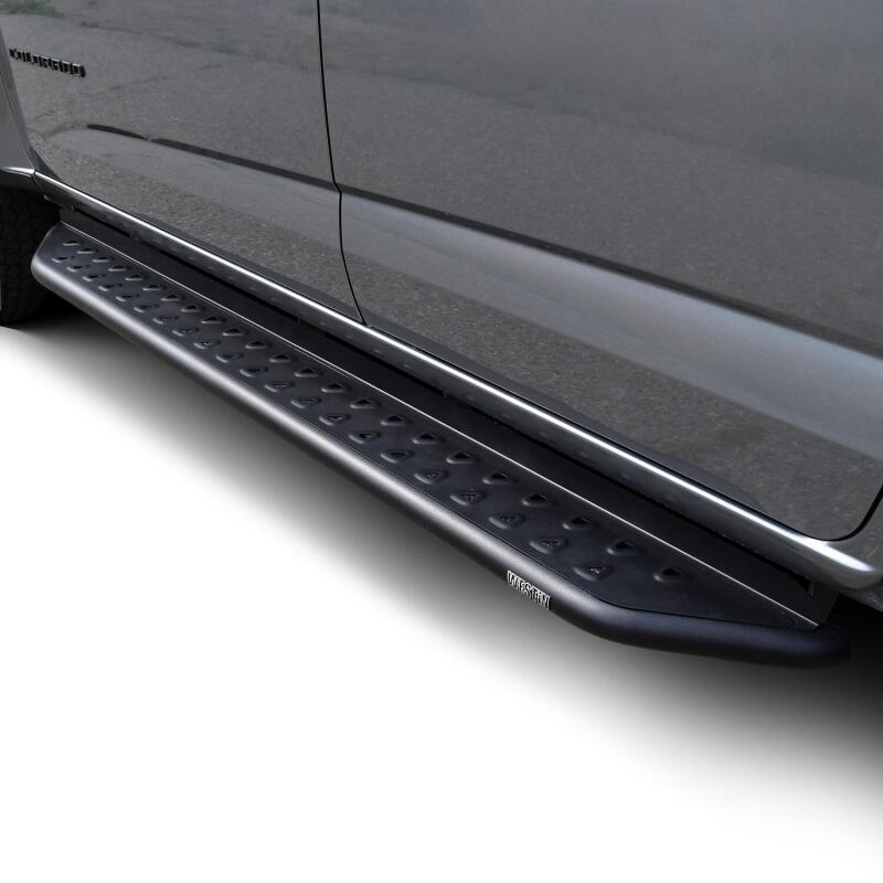 Upgrade your vehicle's functionality and style with Westin's Outlaw Running Boards - a superior upgrade for your truck, Jeep or SUV. Engineered from robust 2in. diameter tubing, these running boards are crafted to endure the toughest conditions, ensuring maximum durability for your adventurous journeys. The robust tubing construction is combined with a 16-gauge steel top step surface plate. Outlaw Running Boards provide a sturdy platform for stepping in and out of your vehicle and are designed to withstand daily wear and tear. Westin Outlaw Running Boards are designed with integrity in mind and help to protect your vehicle rocker panels from potential damage, among other advantages (read about them here). These steel boards fit snugly against the rocker panels and have a unique low-profile design that looks both aggressive and clean. These redesigned Outlaw Running Boards are a superior upgrade from previous Outlaw Nerf Step Bar designs that lacked rock rails and utilize a sleek single-tube design that provides double-thick durability. But it's not all about looks and durability. Safety matters, and the coarse dimple-stamped textured step area enhances slip resistance, providing you and your passengers with a secure footing, even in wet or muddy conditions. Installation is made simple with all necessary hardware and mounting brackets included. Available in a textured black powder coat finish with an electrostatic base coat, these running boards offer long-lasting corrosion protection. They'll maintain their durability and sleek appearance for the long haul. Outlaw Running Boards look good, and stay that way. They're a must-have addition for enthusiasts and everyday drivers alike, all backed by Westin's full 3-year warranty. Order yours today.. Electrostatic base coat provides long lasting corrosion protection. Fits tight to rocker panel for a solid fit and rugged look. Retractable License Plate Holder Conceals Receiver Hitch. Equipped With Mount Points For Optional Auxiliary Lights. Westin 15-24 GMC Canyon Crew Cab Outlaw Running Boards. Optional Class III/IV Hitch Available. Sold Separately. Available For Vehicles With Or Without Backup Sensors. Protects vehicle rocker panels from potential damage. Available in textured black powder coat finish. Coarse textured step area for slip resistance. 2” diameter tubing for maximum durability. Bolt-On Installation; No Drilling Required. Hardware and mounting brackets included. Outlaw Running Boards;Textured Black;. 16-gauge steel top step surface plate. Unique dimple stamped top plate. 2 In. Diameter Tube Frame. 2in Diameter Steel Tube. Outlaw Running Boards. Mount Kit Included. Running Board Set. Running Boards. Textured Black. RNNGBRDS