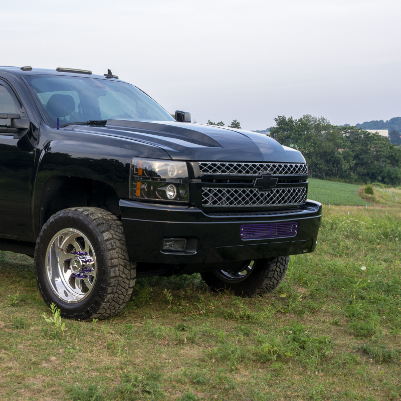 Removing the OEM plastic lower bumper valance on the 2011-2014 Chevrolet Silverado 2500 / 3500 HD trucks is a proven method for improving ground clearance and fitting more aggressive wheel and tire combinations, but leaves an unattractive, gaping void in the lower middle section of the bumper.To solve this issue on customer trucks getting suspension lifts at our shop, we've developed two Lower Valance Filler Panel options for trucks with and without tow hooks. These heavy gauge aluminum panels finish off the lower center cutout in the bumper providing a more aggressive look to lifted or leveled trucks.. This aluminum panel cleanly finishes the bottom opening of your 2011-2014 Chevy Silverado HD truck bumper when the lower plastic air dam has been removed.. Wehrli Custom Fab Valance Filler Panel Kit, 11-14 Chevy 2500/3500 HD, W Tow Hooks, Fine Tex Black. Wehrli 11-14 Chevy 2500/3500 HD Valance Filler Panel Kit w/ Tow Hooks - Fine Tex Black. Valance Filler Panel Kit, 11-14 Chevy 2500/3500 HD, W Tow Hooks, Fine Tex Black. Allows for installation of more aggressive wheel and tire combinations. Powder Coated in Fine Texture Black to match OEM trim plastics. Cutouts provide access and use of factory installed tow hooks. Valance 11-14 Chev HD Tow Hooks FnTexBlk. Includes mounting hardware. Valance 11-14 TH FTB. Valance Panel