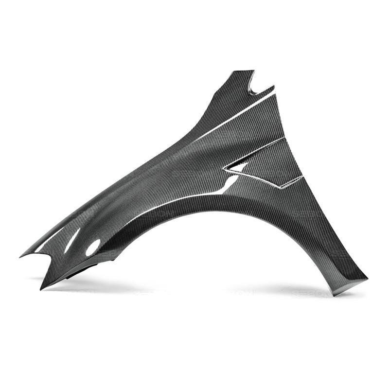 These Seibon carbon fiber fenders are constructed from 3K 2x2 twill weave fabric and manufactured with a focus on consistent weave patterns and an optimal carbon/resin ratio. The components are coated with a glossy clear coat that resists chipping and flaking, and every piece is inspected to meet Seibon’s standards. Designed to reuse OEM hardware, the fenders promote heat extraction, reduce weight compared to steel panels, and arrive ready for installation with no painting required.