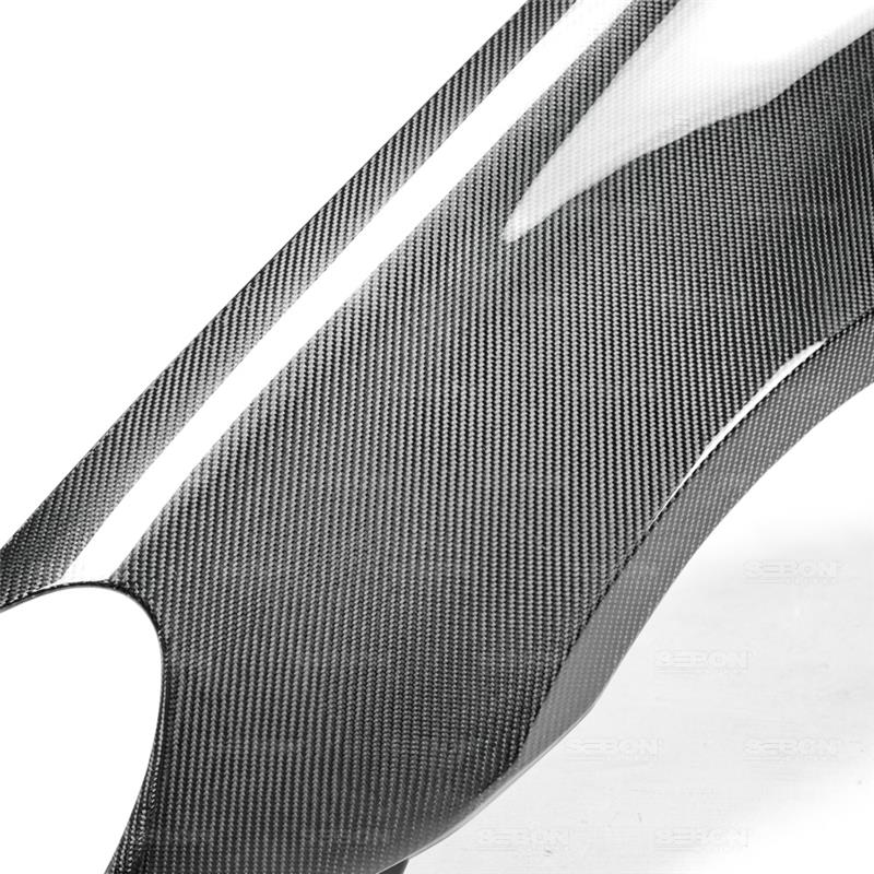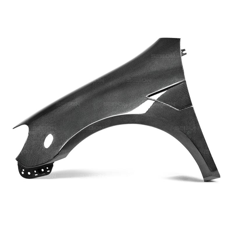 Seibon Carbon components are carefully hand-crafted using only the finest materials. Our production team offers superior craftsmanship with over 20 years of experience working with carbon fiber. Every component is constructed with a consistent weave pattern. Our production processes allows exceptional carbon/resin ratio, creating high product stiffness that also leads to extra strength. For a stunning finish, our products are coated with a glossy clear coat that does not chip or flake. We meticulously inspect all of our components and stand firmly behind our products so that you can enjoy peace of mind with every genuine Seibon Carbon product. Creating performance-oriented products that help shed unnecessary weight without sacrificing style is our specialty. Race after race, Seibon products have proven to be as strong as the driver's ambition to win, thus making Seibon Carbon the preferred brand among professional drivers.. All items are made to order and may require extra time to be manufactured.. Uses professional, high quality 3K 2X2 twill weave carbon fiber fabric.. Carbon fiber wide fenders for 2010-2014 Volkswagen Golf / GTI. Seibon 10-12 Volkswagen Golf Carbon Fiber Fenders - Wide. Show-ready. No painting required.. Reuses OEM install hardware. Promotes heat extraction. Durable and lightweight. Seibon Fenders (Pair). FENDERS (pair). Fender