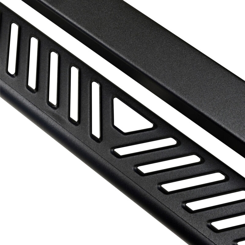 Built from 1.5" mandrel-bent steel tubing, these Outlaw drop running boards combine durable construction with a purposeful 4" drop and die-stamped step plate for reliable traction in wet or muddy conditions. The textured black finish is applied with an electrostatic base coat and powder coat for corrosion resistance and long service life. Designed for simple bolt-on installation, the kit includes mounting brackets and hardware so no drilling is required, making it a practical upgrade for owners who want added rocker-panel protection and an aggressive look that fits the truck’s profile.