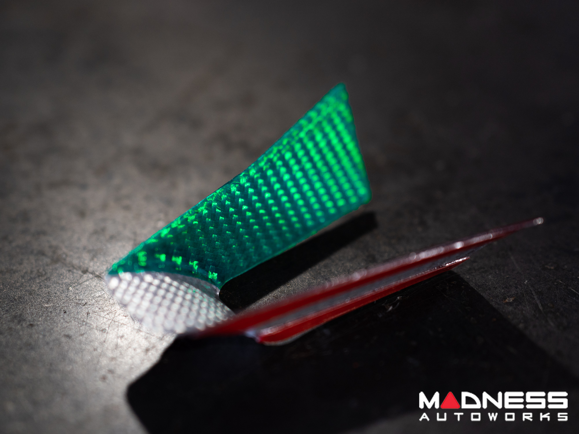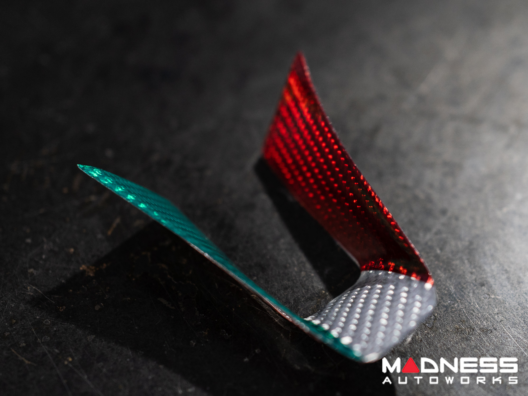 This Genuine Carbon Fiber Steering Wheel Trim Piece gives a nice accent to your factory steering wheel and install with ease. This version comes in a unique Italian Theme featuring the colors of the Italian Flag.
