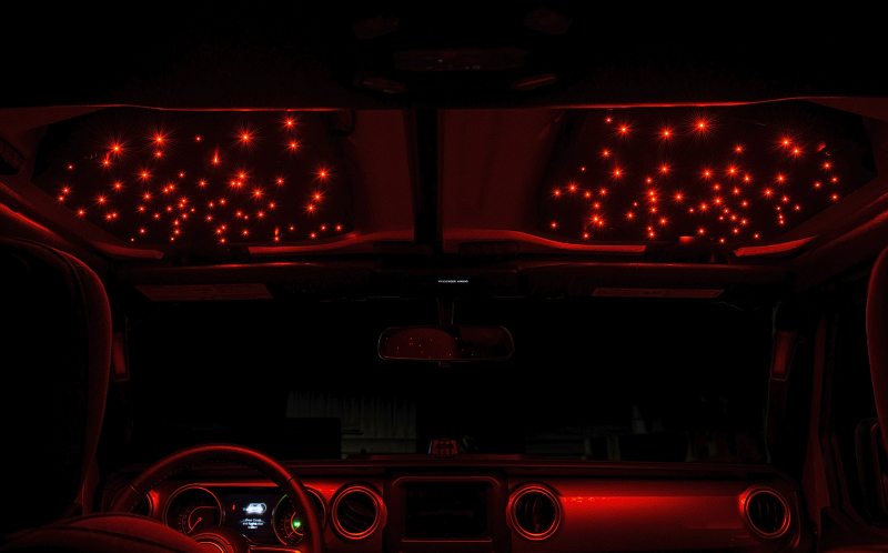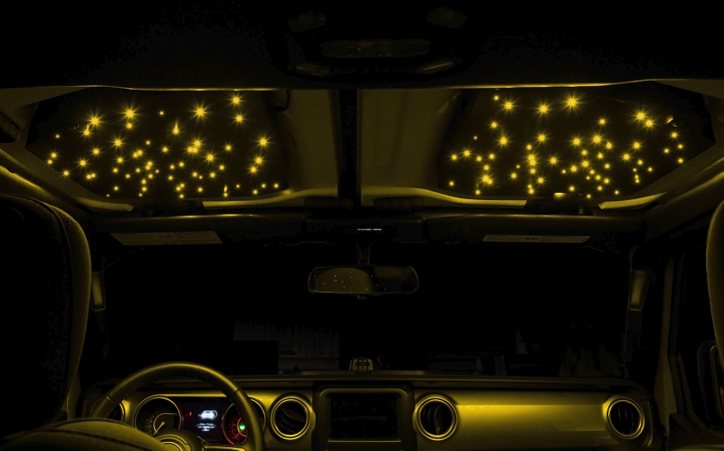 Transform your driving experience with the Jeep Gladiator - ORL StarLiners, an extraordinary blend of style, functionality, and technology. These self-contained acoustic panels elevate the aesthetic of your vehicle's interior by bringing a celestial vibe right to your hardtop ceiling. Imagine driving under a starlit sky wherever your adventure takes you. With integrated fiber optics, the ORL StarLiners produce a stunning "Starlight" effect, turning your Jeep into a luxurious sanctuary on wheels.
