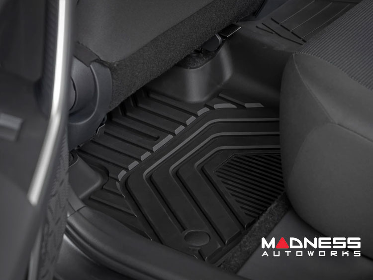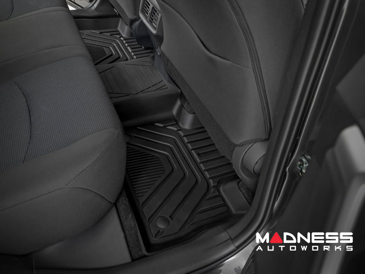 Introducing the Toyota RAV4 Flex-Fit Floor Liners Front+Rear by Rough Country, your essential partner for interior protection. Crafted from a resilient, rubber-like material, these floor liners are tailored uniquely for your RAV4 to ensure maximum coverage and protection.