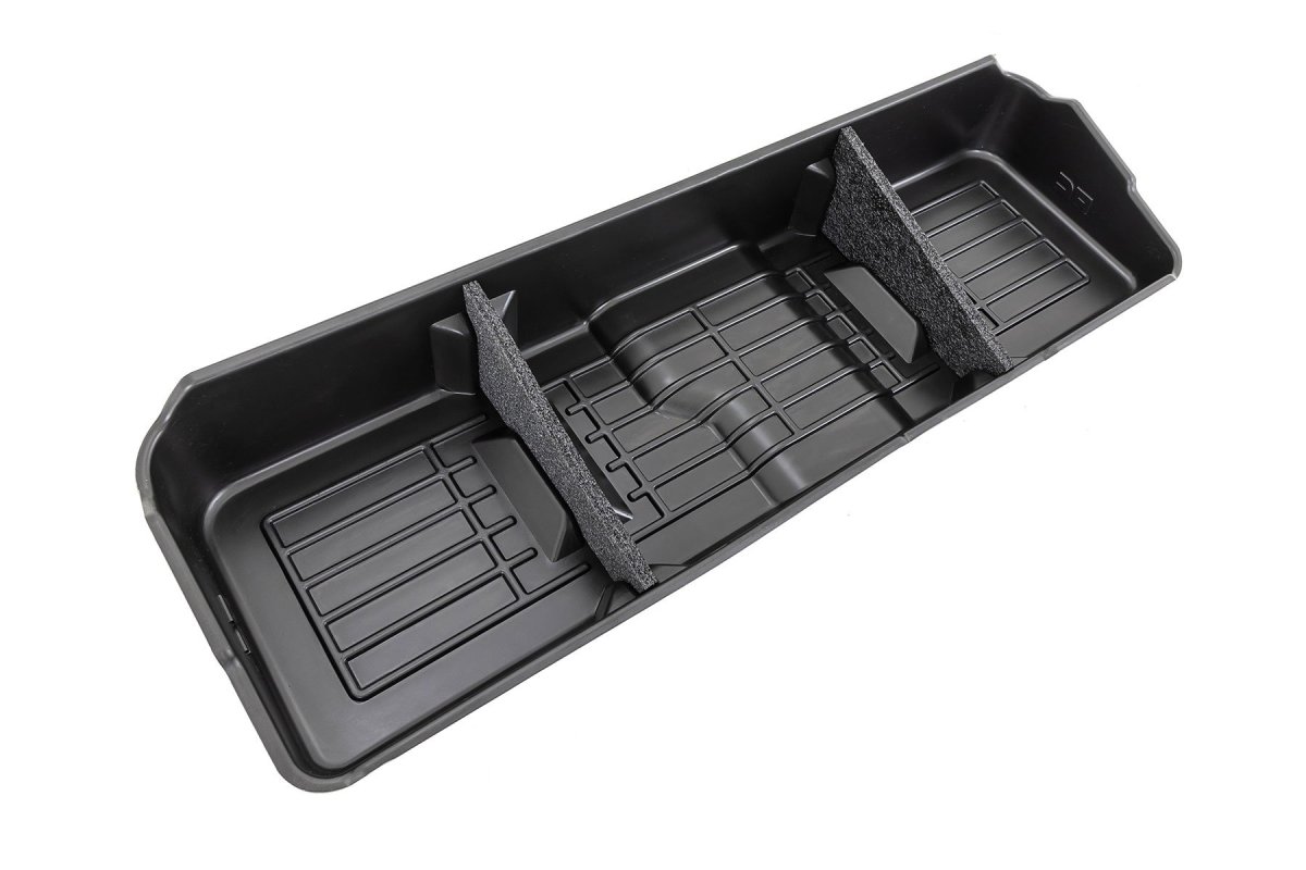 This under-seat storage tray is expertly crafted from high-density thermoplastic, renowned for its durability and resistance to wear and tear, including kicks and nicks. The high-grade material ensures that your storage tray can withstand daily use and exposure without succumbing to corrosion. Meanwhile, its anti-skid surface ensures that your tools, gear, and other essentials stay securely in place, even while driving over rough terrain. Simplifying cargo management, the installation of the Rough Country's Custom-Fit storage is straightforward, requiring minimal time and hassle.