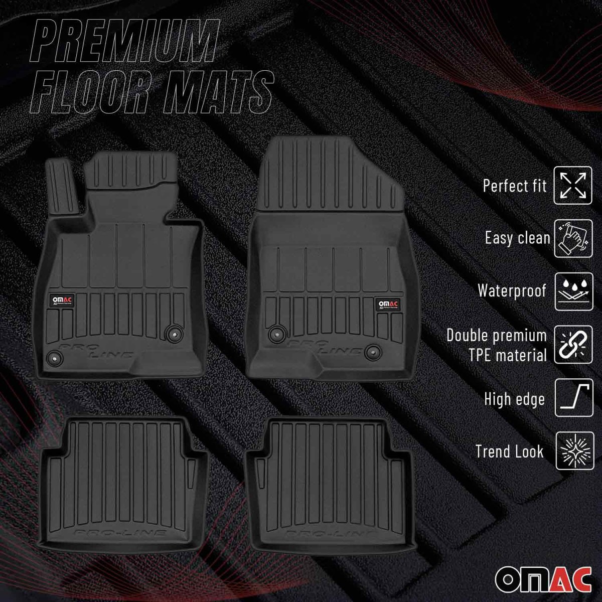Introducing the Mazda 3 Floor Mat by Omac USA - Proline Premium TPE in Black designed specifically for Mazda models from 2013 to 2018. These durable floor mats offer exceptional protection for your vehicle's interior, safeguarding it from everyday messes and wear.