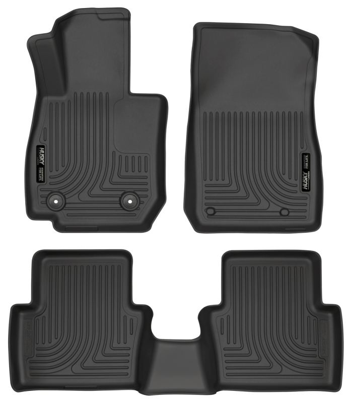 The original all-weather liner is ready, come hell or hot coffee. The Weatherbeater?s construction is a no-slip zone with zero edge curl, and its Stay Put Nibs keep it firmly anchored underfoot. It stands up to chemicals like gas, oil and battery acid, and stays tough and flexible, even under extreme temperatures. Its laser-scanned, FormFit Design? gives your truck, van or SUV an ultra-clean look with easy cleanup to match, while its patented, FormFit Edge? keeps spills contained, carpets unstained. It?s unbeatable Husky protection for life, warrantied the same. Proudly made in the USA.. WeatherBeater(TM) Liners offer protection that extends all the way to your rear seats. So go ahead, lift the seats and leave them up, load after load. Husky's got your floors, and your back, no matter what the road brings your way.. Put Nature firmly in its place. The rugged and sporty WeatherBeater Floor Liners perfectly conform to the contours of your ride and offer un-beatable carpet protection for whatever nature hurls at you.. Our patented FormFit Design(TM) process gives you a glove-like, laser-tight fit to your make and model. Floorboards are 3D scanned to precisely match the contours of your vehicle.. When we say it's "guaranteed for life" that is exactly what we mean. No hassles, no guff. If you have a problem with this or any Husky product, we'll replace it.. Our patented FormFit Edge(TM) features a raised ridge that runs along the door jam, protecting your truck, van, or SUV from all manner of muck.. Over vinyl or carpet, our StayPut(TM) Cleats firmly lock to your factory anchors. It's rock-steady stability underfoot, only by Husky.. Sporty, rugged, and built for a lifetime of non-stop abuse. Put unbeatable all-weather toughness to work on your floor.. Easy to install, remove, and clean. Just yank it out, hose it down and carry on.. Husky Liners 2017 Mazda CX-3 Weatherbeater Black Front & 2nd Seat Floor Liners. Tough And Durable Rubberized Material Resistant To Most Chemicals. Installs Easily In Seconds With No Screws Bolts Fasteners. Custom Fit Designed To Specifically Fit Your Vehicle. Prevents Stains And Soiling Of Your Carpeted Areas. Weatherbeater - Front & 2nd Seat Floor Liners. Husky Liners WB Front & 2nd Floor Liners. front and Second Seat Combo Set; Black. Guaranteed Not To Crack Or Break. WEATHERBEATER FLOOR LINERS. WB FR/2ND SEAT FLOOR LINER. Proudly made in the USA.. Resists Most Chemicals. WeatherBeater Series. Non-Slip Surface. Minimal Shifting. FLOOR COVERINGS. Floor Liners. Floor Liner