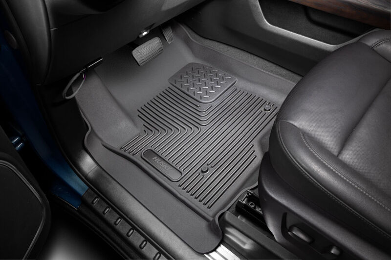 The original all-weather liner is ready, come hell or hot coffee. The Weatherbeater?s construction is a no-slip zone with zero edge curl, and its Stay Put Nibs keep it firmly anchored underfoot. It stands up to chemicals like gas, oil and battery acid, and stays tough and flexible, even under extreme temperatures. Its laser-scanned, FormFit Design? gives your truck, van or SUV an ultra-clean look with easy cleanup to match, while its patented, FormFit Edge? keeps spills contained, carpets unstained. It?s unbeatable Husky protection for life, warrantied the same. Proudly made in the USA.. WeatherBeater(TM) Liners offer protection that extends all the way to your rear seats. So go ahead, lift the seats and leave them up, load after load. Husky's got your floors, and your back, no matter what the road brings your way.. Put Nature firmly in its place. The rugged and sporty WeatherBeater Floor Liners perfectly conform to the contours of your ride and offer un-beatable carpet protection for whatever nature hurls at you.. Our patented FormFit Design(TM) process gives you a glove-like, laser-tight fit to your make and model. Floorboards are 3D scanned to precisely match the contours of your vehicle.. When we say it's "guaranteed for life" that is exactly what we mean. No hassles, no guff. If you have a problem with this or any Husky product, we'll replace it.. Our patented FormFit Edge(TM) features a raised ridge that runs along the door jam, protecting your truck, van, or SUV from all manner of muck.. Over vinyl or carpet, our StayPut(TM) Cleats firmly lock to your factory anchors. It's rock-steady stability underfoot, only by Husky.. Sporty, rugged, and built for a lifetime of non-stop abuse. Put unbeatable all-weather toughness to work on your floor.. Weatherbeater Front & 2nd Seat Floor Liner Black Crew Cab With Factory Carpet Covered Under Seat Storage Box. Weatherbeater Front/2nd Seat Floor Liner Black Crew Cab With Factory Carpet Covered Under Seat Storage Box. Husky Liners 19-23 Chevrolet Silverado 1500 Crew Cab WeatherBeater Blk Front & 2nd Seat Floor Liners. Husky Liners 2019 Chevy Silverado 1500 CC w/Storage Box Front & 2nd Seat Weatherbeater Floor Liners. Easy to install, remove, and clean. Just yank it out, hose it down and carry on.. Contains Spill Until You Can Pull It Out; Wash It Off Good As New. Exclusive Stayput Cleats Help Keep Your Liners Securely In Place. Our Sporty Liner Material Is Rugged; Can Stand Up Like No Other. Our Formfit Design Process Perfectly Forms Each Liner. Weatherbeater - Front & 2nd Seat Floor Liners. Husky Liners WB Front & 2nd Floor Liners. Easy To Install; Remove And Clean. Front & 2nd Seat Floor Liners. No Hassle Lifetime Guarantee. WEATHERBEATER FLOOR LINERS. WB FR/2ND SEAT FLOOR LINER. Proudly made in the USA.. WeatherBeater Series. FLOOR COVERINGS. Made In The USA. Floor Liners. Floor Liner