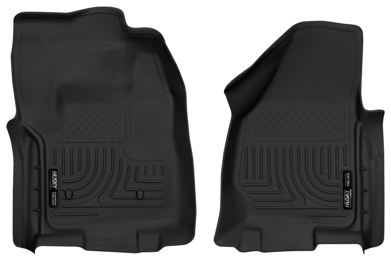Put Nature firmly in its place. The rugged and sporty WeatherBeater™ Floor Liners perfectly conform to the contours of your ride and offer un-beatable carpet protection for whatever nature hurls at you.. Put Nature firmly in its place. The rugged and sporty WeatherBeater Floor Liners perfectly conform to the contours of your ride and offer un-beatable carpet protection for whatever nature hurls at you.. Weatherbeater? premium liner material is super-tough and resilient. Stands up to battery acid, oil and conditions from sub-zero to blistering hot. Strong yet pliable, for a smooth, even look and feel.. Weatherbeater? cargo liners are easy to remove and easy to clean up. Just spray it down, shake it off, and it?s back on the job. Built for hassle-free maintenance for life.. Our FormFit? design process gives you a glove-like fit. Cargo areas are 3D laser-scanned. A better-than-factory fit for your make & model.. The FormFit? edge gives you extra protection from spillover around the edges, with a raised lip to keep everything contained.. Made with our ProGard? formula to deliver a tough-yet-flexible design that installs easily and cleans up quickly.. Husky Liners? Weatherbeater? Cargo Liners stand up to everyday life, and stay like new. Proudly made in the USA.. Husky Liners 2012.5 Ford SuperDuty/F-250/F-350 Regular Cab WeatherBeater Black Floor Liners. A solid foundation to protect any type of cargo. No slipping, no sliding, no nonsense.. Easy to install, remove, and clean. Just yank it out, hose it down and carry on.. Tough And Durable Rubberized Material Resistant To Most Chemicals. Installs Easily In Seconds With No Screws Bolts Fasteners. Custom Fit Designed To Specifically Fit Your Vehicle. Prevents Stains And Soiling Of Your Carpeted Areas. Weatherbeater Front Floor Liner Black. Weatherbeater - Front Floor Liners. Husky Liners WB Front Floor Liners. Guaranteed Not To Crack Or Break. WEATHERBEATER FLOOR LINERS. Resists Most Chemicals. WeatherBeater Series. WB FRONT FLOOR LINER. Non-Slip Surface. Minimal Shifting. FLOOR COVERINGS. Floor Liners. Floor Liner