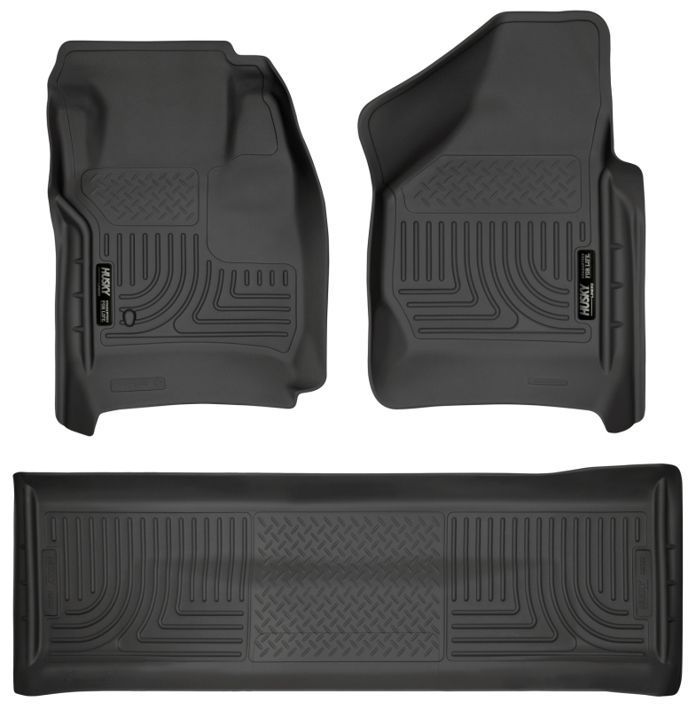 The original all-weather liner is ready, come hell or hot coffee. The Weatherbeater?s construction is a no-slip zone with zero edge curl, and its Stay Put Nibs keep it firmly anchored underfoot. It stands up to chemicals like gas, oil and battery acid, and stays tough and flexible, even under extreme temperatures. Its laser-scanned, FormFit Design? gives your truck, van or SUV an ultra-clean look with easy cleanup to match, while its patented, FormFit Edge? keeps spills contained, carpets unstained. It?s unbeatable Husky protection for life, warrantied the same. Proudly made in the USA.. WeatherBeater(TM) Liners offer protection that extends all the way to your rear seats. So go ahead, lift the seats and leave them up, load after load. Husky's got your floors, and your back, no matter what the road brings your way.. Put Nature firmly in its place. The rugged and sporty WeatherBeater Floor Liners perfectly conform to the contours of your ride and offer un-beatable carpet protection for whatever nature hurls at you.. Our patented FormFit Design(TM) process gives you a glove-like, laser-tight fit to your make and model. Floorboards are 3D scanned to precisely match the contours of your vehicle.. When we say it's "guaranteed for life" that is exactly what we mean. No hassles, no guff. If you have a problem with this or any Husky product, we'll replace it.. Our patented FormFit Edge(TM) features a raised ridge that runs along the door jam, protecting your truck, van, or SUV from all manner of muck.. Over vinyl or carpet, our StayPut(TM) Cleats firmly lock to your factory anchors. It's rock-steady stability underfoot, only by Husky.. Sporty, rugged, and built for a lifetime of non-stop abuse. Put unbeatable all-weather toughness to work on your floor.. Husky Liners 08-10 Ford SD Crew Cab WeatherBeater Combo Black Floor Liners (w/o Manual Trans Case). Easy to install, remove, and clean. Just yank it out, hose it down and carry on.. Weatherbeater - Front & 2nd Seat Floor Liners (Footwell Coverage). Tough And Durable Rubberized Material Resistant To Most Chemicals. Weatherbeater Front & 2nd Seat Floor Liner Black Crew Cab. Installs Easily In Seconds With No Screws Bolts Fasteners. Weatherbeater Front/2nd Seat Floor Liner Black Crew Cab. Custom Fit Designed To Specifically Fit Your Vehicle. Prevents Stains And Soiling Of Your Carpeted Areas. Husky Liners WB Front & 2nd Floor Liners. Guaranteed Not To Crack Or Break. WB FR/2ND SEAT FLOOR LNER-FW. WEATHERBEATER FLOOR LINERS. Proudly made in the USA.. Resists Most Chemicals. WeatherBeater Series. Non-Slip Surface. Minimal Shifting. FLOOR COVERINGS. Floor Liners. Floor Liner