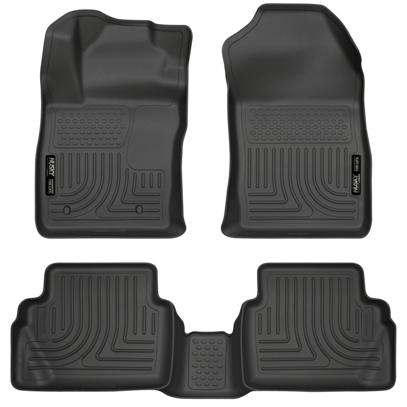 The original all-weather liner is ready, come hell or hot coffee. The Weatherbeater?s construction is a no-slip zone with zero edge curl, and its Stay Put Nibs keep it firmly anchored underfoot. It stands up to chemicals like gas, oil and battery acid, and stays tough and flexible, even under extreme temperatures. Its laser-scanned, FormFit Design? gives your truck, van or SUV an ultra-clean look with easy cleanup to match, while its patented, FormFit Edge? keeps spills contained, carpets unstained. It?s unbeatable Husky protection for life, warrantied the same. Proudly made in the USA.. WeatherBeater(TM) Liners offer protection that extends all the way to your rear seats. So go ahead, lift the seats and leave them up, load after load. Husky's got your floors, and your back, no matter what the road brings your way.. Put Nature firmly in its place. The rugged and sporty WeatherBeater Floor Liners perfectly conform to the contours of your ride and offer un-beatable carpet protection for whatever nature hurls at you.. Our patented FormFit Design(TM) process gives you a glove-like, laser-tight fit to your make and model. Floorboards are 3D scanned to precisely match the contours of your vehicle.. When we say it's "guaranteed for life" that is exactly what we mean. No hassles, no guff. If you have a problem with this or any Husky product, we'll replace it.. Our patented FormFit Edge(TM) features a raised ridge that runs along the door jam, protecting your truck, van, or SUV from all manner of muck.. Over vinyl or carpet, our StayPut(TM) Cleats firmly lock to your factory anchors. It's rock-steady stability underfoot, only by Husky.. Sporty, rugged, and built for a lifetime of non-stop abuse. Put unbeatable all-weather toughness to work on your floor.. Easy to install, remove, and clean. Just yank it out, hose it down and carry on.. Husky Liners 11-12 Ford Fiesta WeatherBeater Combo Black Floor Liners. Tough And Durable Rubberized Material Resistant To Most Chemicals. Installs Easily In Seconds With No Screws Bolts Fasteners. Custom Fit Designed To Specifically Fit Your Vehicle. Prevents Stains And Soiling Of Your Carpeted Areas. Weatherbeater - Front & 2nd Seat Floor Liners. Husky Liners WB Front & 2nd Floor Liners. front and Second Seat Combo Set; Black. Guaranteed Not To Crack Or Break. WEATHERBEATER FLOOR LINERS. WB FR/2ND SEAT FLOOR LINER. Proudly made in the USA.. Resists Most Chemicals. WeatherBeater Series. Non-Slip Surface. Minimal Shifting. FLOOR COVERINGS. Floor Liners. Floor Liner
