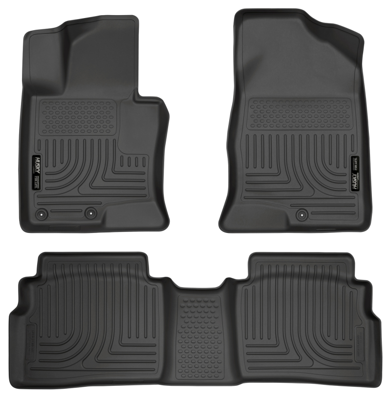 The original all-weather liner is ready, come hell or hot coffee. The Weatherbeater?s construction is a no-slip zone with zero edge curl, and its Stay Put Nibs keep it firmly anchored underfoot. It stands up to chemicals like gas, oil and battery acid, and stays tough and flexible, even under extreme temperatures. Its laser-scanned, FormFit Design? gives your truck, van or SUV an ultra-clean look with easy cleanup to match, while its patented, FormFit Edge? keeps spills contained, carpets unstained. It?s unbeatable Husky protection for life, warrantied the same. Proudly made in the USA.. WeatherBeater(TM) Liners offer protection that extends all the way to your rear seats. So go ahead, lift the seats and leave them up, load after load. Husky's got your floors, and your back, no matter what the road brings your way.. Put Nature firmly in its place. The rugged and sporty WeatherBeater Floor Liners perfectly conform to the contours of your ride and offer un-beatable carpet protection for whatever nature hurls at you.. Our patented FormFit Design(TM) process gives you a glove-like, laser-tight fit to your make and model. Floorboards are 3D scanned to precisely match the contours of your vehicle.. When we say it's "guaranteed for life" that is exactly what we mean. No hassles, no guff. If you have a problem with this or any Husky product, we'll replace it.. Our patented FormFit Edge(TM) features a raised ridge that runs along the door jam, protecting your truck, van, or SUV from all manner of muck.. Over vinyl or carpet, our StayPut(TM) Cleats firmly lock to your factory anchors. It's rock-steady stability underfoot, only by Husky.. Sporty, rugged, and built for a lifetime of non-stop abuse. Put unbeatable all-weather toughness to work on your floor.. Easy to install, remove, and clean. Just yank it out, hose it down and carry on.. Husky Liners 11-12 Hyundai Sonata WeatherBeater Combo Black Floor Liners. Tough And Durable Rubberized Material Resistant To Most Chemicals. Installs Easily In Seconds With No Screws Bolts Fasteners. Custom Fit Designed To Specifically Fit Your Vehicle. Prevents Stains And Soiling Of Your Carpeted Areas. Fits 4-Door models including Hybrid versions.. Weatherbeater - Front & 2nd Seat Floor Liners. Husky Liners WB Front & 2nd Floor Liners. Guaranteed Not To Crack Or Break. WEATHERBEATER FLOOR LINERS. WB FR/2ND SEAT FLOOR LINER. Proudly made in the USA.. Resists Most Chemicals. WeatherBeater Series. Non-Slip Surface. Minimal Shifting. FLOOR COVERINGS. Floor Liners. Floor Liner