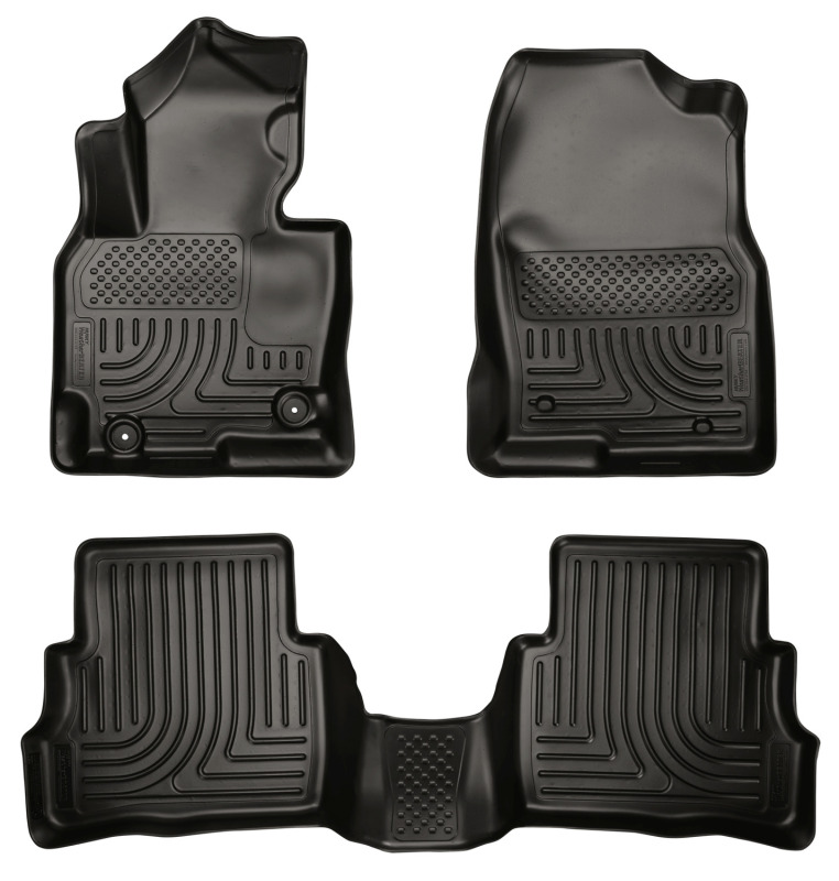 The original all-weather liner is ready, come hell or hot coffee. The Weatherbeater?s construction is a no-slip zone with zero edge curl, and its Stay Put Nibs keep it firmly anchored underfoot. It stands up to chemicals like gas, oil and battery acid, and stays tough and flexible, even under extreme temperatures. Its laser-scanned, FormFit Design? gives your truck, van or SUV an ultra-clean look with easy cleanup to match, while its patented, FormFit Edge? keeps spills contained, carpets unstained. It?s unbeatable Husky protection for life, warrantied the same. Proudly made in the USA.. WeatherBeater(TM) Liners offer protection that extends all the way to your rear seats. So go ahead, lift the seats and leave them up, load after load. Husky's got your floors, and your back, no matter what the road brings your way.. Put Nature firmly in its place. The rugged and sporty WeatherBeater Floor Liners perfectly conform to the contours of your ride and offer un-beatable carpet protection for whatever nature hurls at you.. Our patented FormFit Design(TM) process gives you a glove-like, laser-tight fit to your make and model. Floorboards are 3D scanned to precisely match the contours of your vehicle.. When we say it's "guaranteed for life" that is exactly what we mean. No hassles, no guff. If you have a problem with this or any Husky product, we'll replace it.. Our patented FormFit Edge(TM) features a raised ridge that runs along the door jam, protecting your truck, van, or SUV from all manner of muck.. Over vinyl or carpet, our StayPut(TM) Cleats firmly lock to your factory anchors. It's rock-steady stability underfoot, only by Husky.. Sporty, rugged, and built for a lifetime of non-stop abuse. Put unbeatable all-weather toughness to work on your floor.. Easy to install, remove, and clean. Just yank it out, hose it down and carry on.. Husky Liners 2013 Mazda CX-5 WeatherBeater Combo Black Floor Liners. Tough And Durable Rubberized Material Resistant To Most Chemicals. Installs Easily In Seconds With No Screws Bolts Fasteners. Custom Fit Designed To Specifically Fit Your Vehicle. Prevents Stains And Soiling Of Your Carpeted Areas. Weatherbeater - Front & 2nd Seat Floor Liners. Husky Liners WB Front & 2nd Floor Liners. front and Second Seat Combo Set; Black. Guaranteed Not To Crack Or Break. Front & 2nd Seat Floor Liners. WEATHERBEATER FLOOR LINERS. WB FR/2ND SEAT FLOOR LINER. Proudly made in the USA.. Resists Most Chemicals. WeatherBeater Series. Non-Slip Surface. Minimal Shifting. FLOOR COVERINGS. Floor Liners. Floor Liner