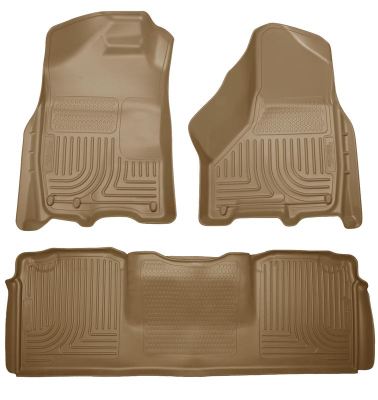 The original all-weather liner is ready, come hell or hot coffee. The Weatherbeater?s construction is a no-slip zone with zero edge curl, and its Stay Put Nibs keep it firmly anchored underfoot. It stands up to chemicals like gas, oil and battery acid, and stays tough and flexible, even under extreme temperatures. Its laser-scanned, FormFit Design? gives your truck, van or SUV an ultra-clean look with easy cleanup to match, while its patented, FormFit Edge? keeps spills contained, carpets unstained. It?s unbeatable Husky protection for life, warrantied the same. Proudly made in the USA.. WeatherBeater(TM) Liners offer protection that extends all the way to your rear seats. So go ahead, lift the seats and leave them up, load after load. Husky's got your floors, and your back, no matter what the road brings your way.. Put Nature firmly in its place. The rugged and sporty WeatherBeater Floor Liners perfectly conform to the contours of your ride and offer un-beatable carpet protection for whatever nature hurls at you.. Our patented FormFit Design(TM) process gives you a glove-like, laser-tight fit to your make and model. Floorboards are 3D scanned to precisely match the contours of your vehicle.. When we say it's "guaranteed for life" that is exactly what we mean. No hassles, no guff. If you have a problem with this or any Husky product, we'll replace it.. Our patented FormFit Edge(TM) features a raised ridge that runs along the door jam, protecting your truck, van, or SUV from all manner of muck.. Over vinyl or carpet, our StayPut(TM) Cleats firmly lock to your factory anchors. It's rock-steady stability underfoot, only by Husky.. Sporty, rugged, and built for a lifetime of non-stop abuse. Put unbeatable all-weather toughness to work on your floor.. Husky Liners 10-12 Dodge Ram 2500/3500 Mega Cab WeatherBeater Combo Tan Floor Liners. Easy to install, remove, and clean. Just yank it out, hose it down and carry on.. Tough And Durable Rubberized Material Resistant To Most Chemicals. Installs Easily In Seconds With No Screws Bolts Fasteners. Weatherbeater Front & 2nd Seat Floor Liner Tan Mega Cab. Weatherbeater Front/2nd Seat Floor Liner Tan Mega Cab. Custom Fit Designed To Specifically Fit Your Vehicle. Prevents Stains And Soiling Of Your Carpeted Areas. Weatherbeater - Front & 2nd Seat Floor Liners. Husky Liners WB Front & 2nd Floor Liners. Guaranteed Not To Crack Or Break. WEATHERBEATER FLOOR LINERS. WB FR/2ND SEAT FLOOR LINER. Proudly made in the USA.. Resists Most Chemicals. WeatherBeater Series. Non-Slip Surface. Minimal Shifting. FLOOR COVERINGS. Floor Liners. Floor Liner
