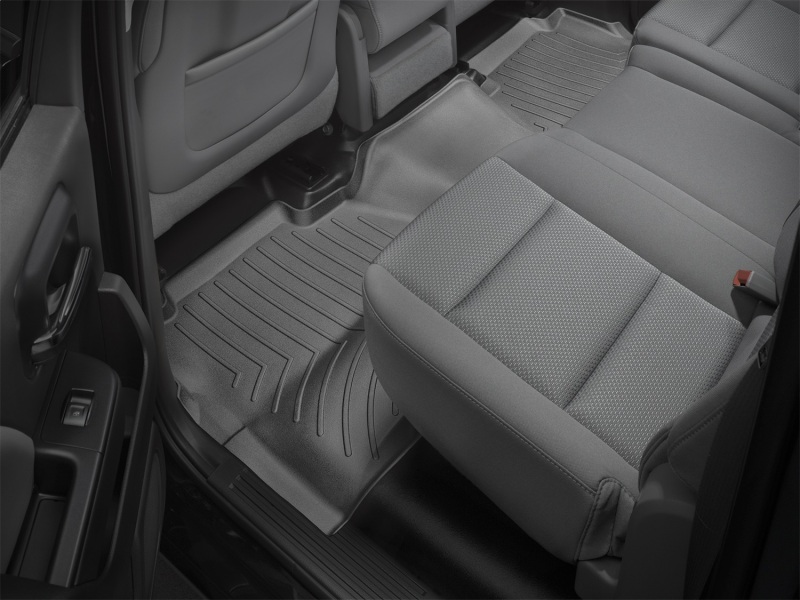 The WeatherTech FloorLiner DigitalFit accurately and completely lines the interior carpet giving "absolute interior protection". Digital laser measurements of interior surfaces offer a consistently perfect fit. A patent pending HighDensity TriExtruded (HDTE) material allows for a rigid core for strength while offering surface friction to the carpet, as well as tactile feel to the surface. Advanced surfacing creates channels that carry fluids and debris to a lower reservoir with further channeling to help minimize fluid movement while driving. Once fluids become trapped in the reservoir, away from shoes and clothing, they are easily removed from the WeatherTech FloorLiner DigitalFit over the door sill. No muss-no fuss. 3 year warranty.. The WeatherTech FloorLiner DigitalFit accurately and completely lines the interior carpet giving absolute interior protection. Digital laser measurements of interior surfaces offer a consistently perfect fit. A patent pending HighDensity TriExtruded (HDTE) material allows for a rigid core for strength while offering surface friction to the carpet, as well as tactile feel to the surface. Advanced surfacing creates channels that carry fluids and debris to a lower reservoir with further channeling to help minimize fluid movement while driving. Once fluids become trapped in the reservoir, away from shoes and clothing, they are easily removed from the WeatherTech FloorLiner DigitalFit over the door sill. No muss-no fuss.. WeatherTech 14-15 Chevy Silverado 1500 (Fits w/ OEM Rear Storage) Rear FloorLiner - Black. FloorLinerâ„¢ DigitalFit®; Black; Rear; Fits Vehicles w/Under Seat Storage;. Hold Up To 1.5 Quarts Of Water Without Spilling. Will Not Curl/Crack/Harden In Sub-Zero Weather. Designed To Trap Water/Road Salt/Mud And Sand. Protective Non-Stick Finish For Quick Cleanup. Fluids Easily Removed Once They Are Trapped. Made Of 16 lbs. Of Pliable Natural Rubber. FloorLiner™ DigitalFit®; Black; Rear;. Anti-Skid Ridges To Prevent Shifting. Made Of Natural Heavy Duty Rubber. FloorLiner™ DigitalFit®. Deeply Sculpted Channels. REAR FLOORLINER. Floor Mat Set. FloorMat