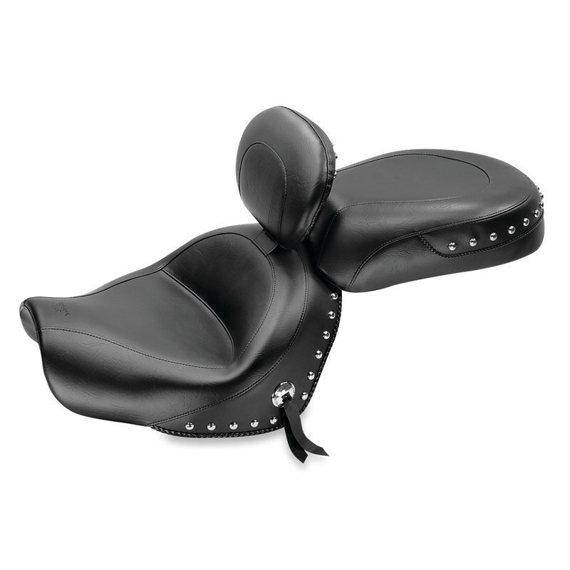 Yamaha V-Star 950 Tourer Two-Piece Motorcycle Seat - Mustang Motorcycle - Driver Backrest Studs - Black - `09-`17